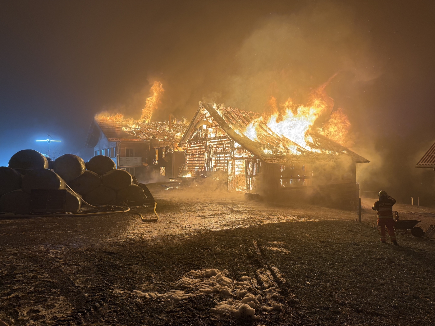 Die drei Gebäude brannten komplett nieder. Ein weiterer, sich auf derselben Liegenschaft befindlicher Stall konnte durch die Feuerwehr gehalten und gesichert werden, wie es weiter hiess.