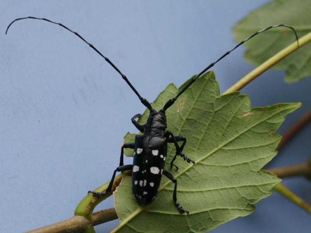 Der Asiatische Laubholzbockkäfer ist ein invasiver, besonders gefährlicher Schädling. Er bedroht vor allem Wälder. Der ohne Fühler 2,5 bis 3,5 Zentimeter lange Käfer mit hellen Flecken befällt Sträucher und Laubbäume wie etwa Ahorn, Birken, Rosskastanien und Weiden.