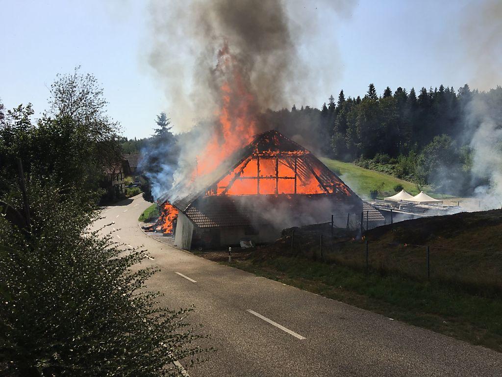 Anwohner hatten das Feuer in der Scheune mit Stallungen kurz nach 11 Uhr bemerkt und die Feuerwehr alarmiert. Als diese wenig später eintraf, brannte das Gebäude bereits lichterloh, wie die Kantonspolizei Aargau mitteilte.