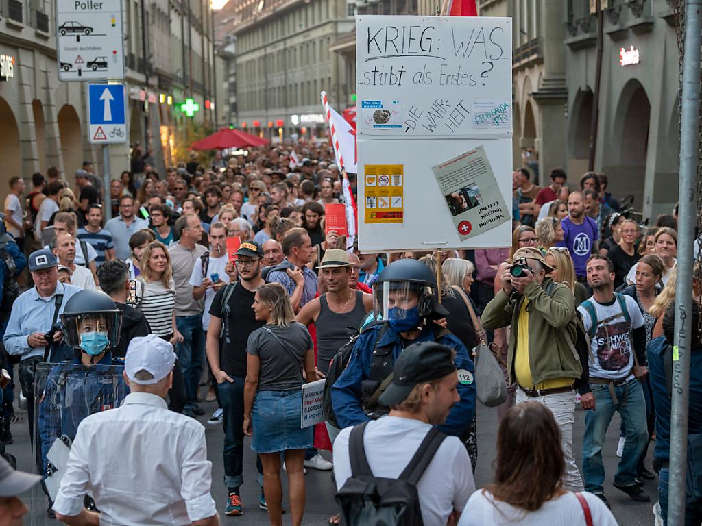 (Keystone-SDA) In Bern haben am Mittwochabend mehr als tausend Menschen gegen die Ausweitung der Zertifikatspflicht demonstriert. Sie warfen dem Bundesrat vor, er führe den Impfzwang durch die Hintertür ein.