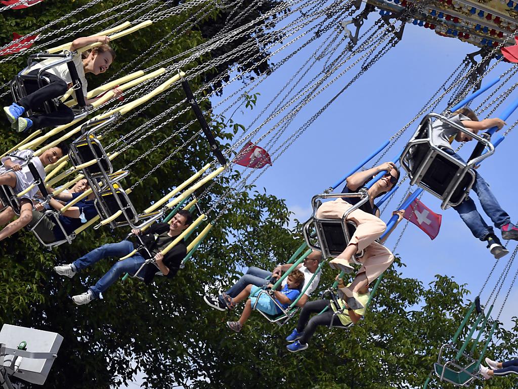 Wo eine Herbstmesse ist, ist der Lunapark nicht weit: Fahrgeschäfte am diesjährigen Knabenschiessen in Zürich. (Archivbild) KEYSTONE/WALTER BIERI sda-ats