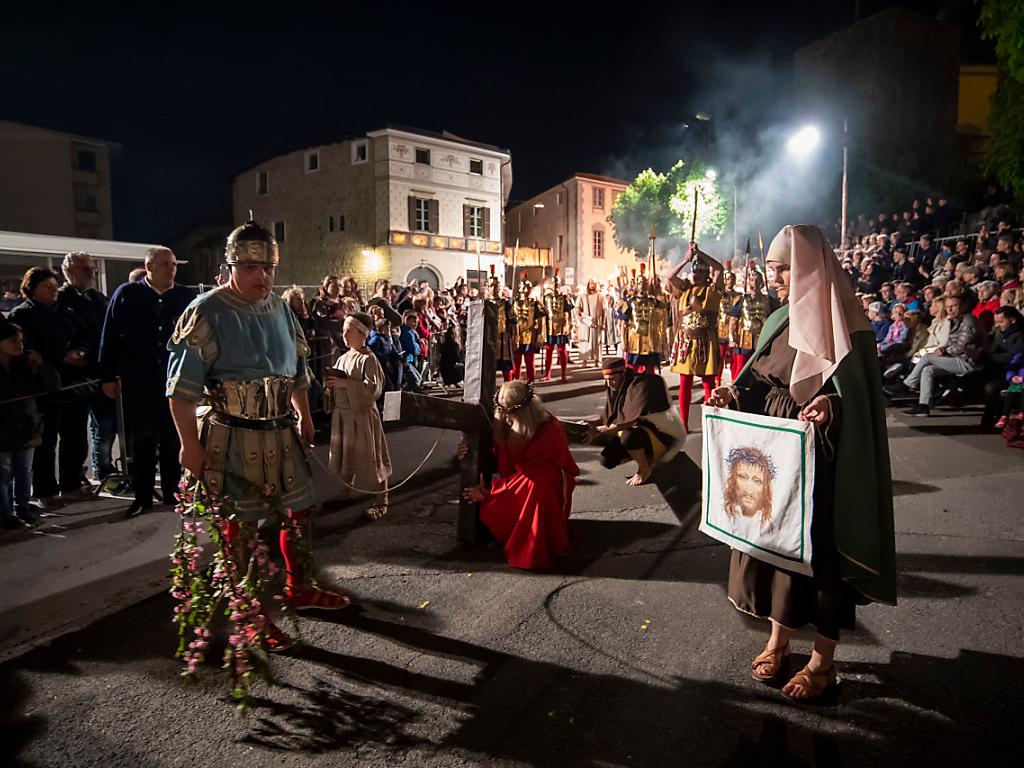 (Keystone-SDA) Mehrere tausend Personen haben am Gründonnerstagabend der historischen Osterprozession in Mendrisio TI beigewohnt. Die Bewohner der Südtessiner Ortschaft nahmen in rund 270 Rollen an der diesjährigen Prozession teil, welche den Leidensweg von Jesus Christus zeigt.