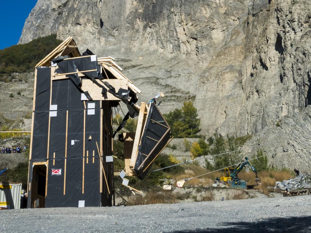 (Keystone-SDA) Bei einem Test-Versuch in Chamoson VS hat ein Holzgebäude mehreren künstlich simulierten Stössen eines starken Erdbebens nahezu standgehalten. Der Widerstandstest wurde von Experten der Berner Fachhochschule durchgeführt.