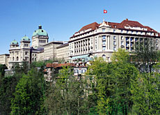 Das Bellevue liegt unmittelbar neben dem Bundeshaus. Bellevue Hotel
