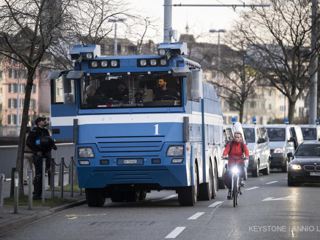 Die Polizei war mit einem Wasserwerfer und einem Grossaufgebot vor Ort, wie ein Reporter der Nachrichtenagentur Keystone-SDA vor Ort berichtete. Auf einem Transparent war zu lesen «Wohnruum für all suscht gits Krawall» zu lesen.