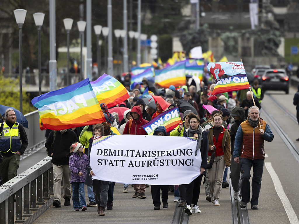 (Keystone-SDA) Rund 500 Menschen haben am Ostermontag in Bern für den Frieden demonstriert. «Demilitarisierung statt Aufrüstung» lautete das Motto des diesjährigen Ostermarschs.