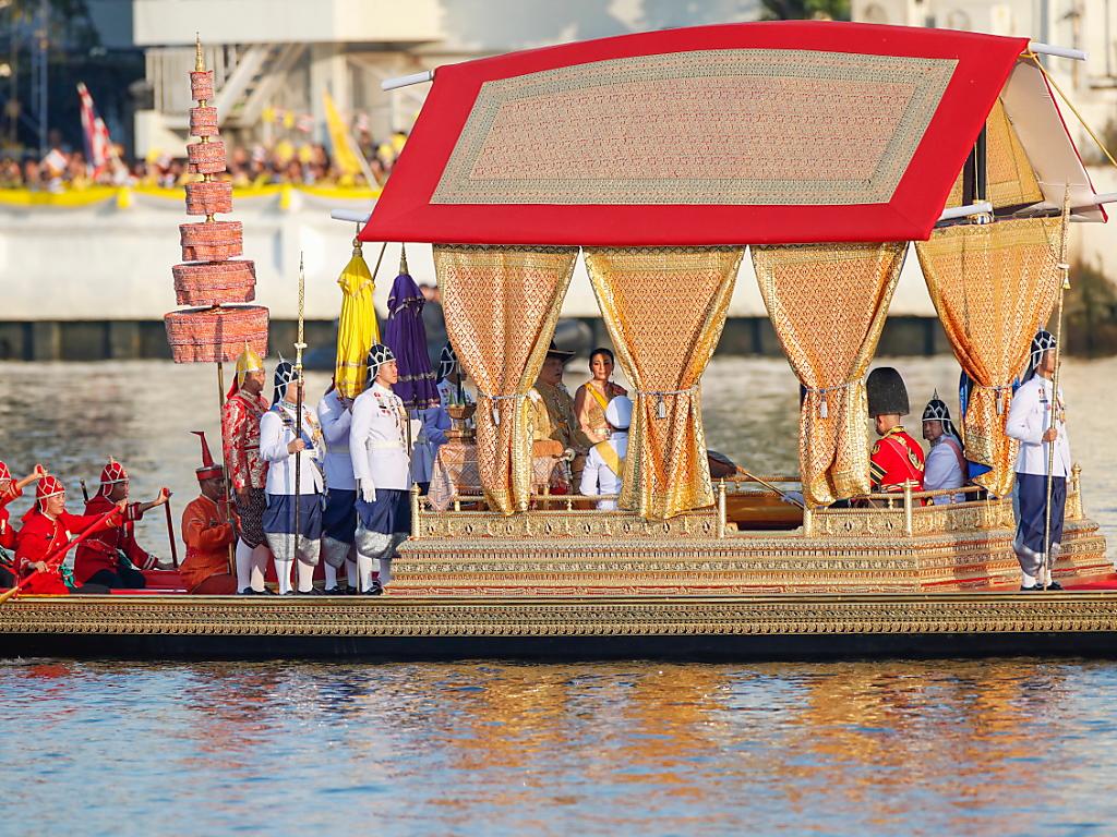 Der 67 Jahre alte Monarch – auch bekannt als Rama X. – liess sich auf einer goldenen Gondel über den Fluss Chao Phraya rudern. Für den sonstigen Verkehr war der Fluss gesperrt. Am Ufer beobachteten Zehntausende das ungewöhnliche Spektakel. Viele waren in gelb gekleidet – der Farbe des Königshauses.