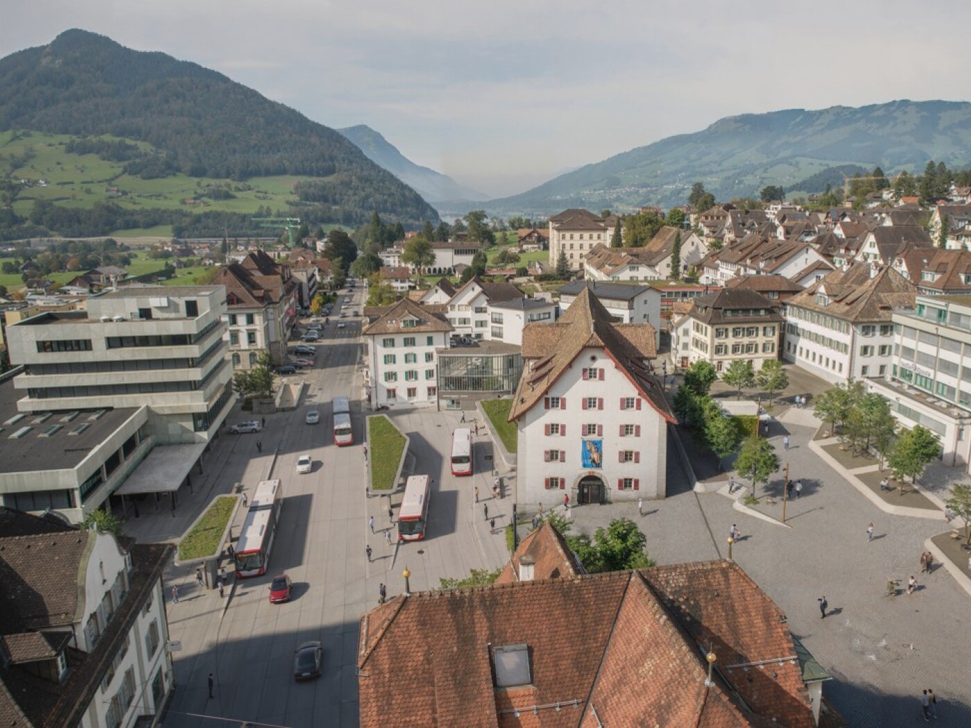 Die umgebaute Busstation «Schwyz Zentrum» wird nach Angaben der Gemeinde neu über acht Haltekanten und begrünte Perrondächer verfügen. Auch wird der neue Bushof im Gegensatz zum alten behindertengerecht sein.