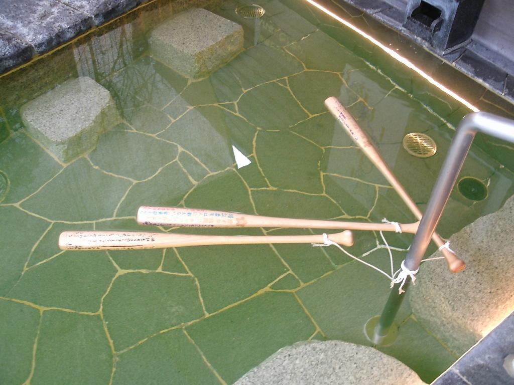 Während die Onsen-Besucher im heissen Wasser baden, treiben die Baseballschläger um sie herum und machen die meist älteren Menschen so auf die Gefahr durch Trickbetrüger aufmerksam. Warnungen wie «Teilen sie niemandem Geheimnummern mit» oder «Nehmen sie keine verdächtigen Anrufe an» stehen in japanischen Schriftzeichen auf den Holzschlägern geschrieben.