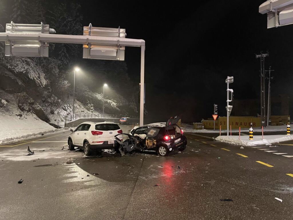 Gemäss einer Mitteilung der Kantonspolizei Schwyz vom Mittwoch ereignete sich der Unfall um 19 Uhr bei der Lichtsignalanlage Rabennest. Der 59-jährige Lenker des anderen Autos wurde leicht verletzt und vom Rettungsdienst ins Spital gebracht.