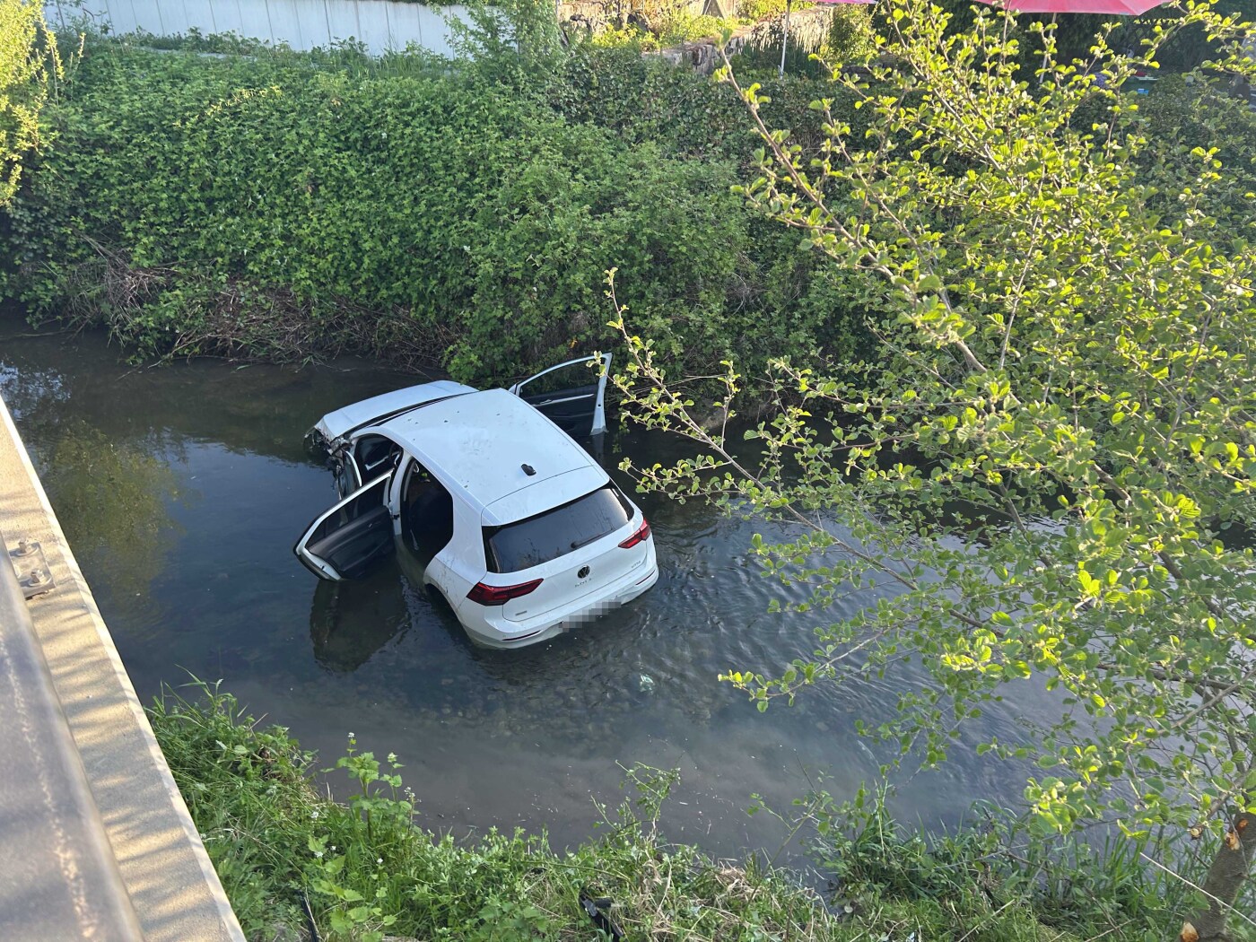 Ein 20-jähriger Automobilist ist am Sonntagmorgen in Endingen AG mit seinem Fahrzeug von der Strasse abgekommen. Er landet mit seinem Auto in der Surb. Der Lenker und die drei Mitfahrer blieben unverletzt.