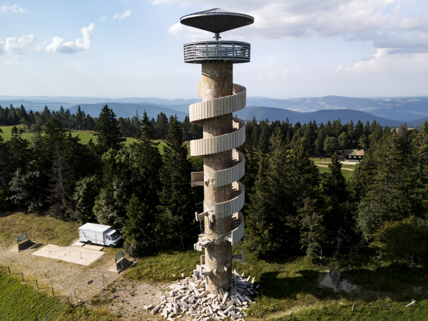 Im Mai und Juni 2022 waren Stufen am Aussichtsturm in Valbirse im Berner Jura abgebrochen. Um die Beweismittel zu sichern, wurden im Anschluss das Bauwerk und die eingestürzten Teile beschlagnahmt und ein Sperrgebiet eingerichtet.