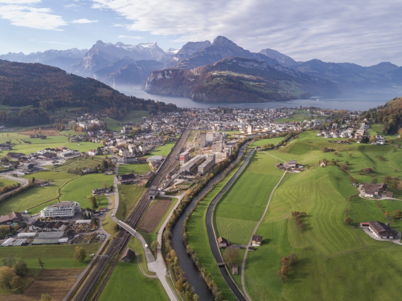 (Keystone-SDA) Im Gebiet nördlich des Bahnhofs Brunnen soll das Areal einer ehemaligen Zementfabrik neu überbaut werden. Dazu muss eine neue Zufahrtsstrasse realisiert werden. Ein geplanter Hochkreisel wurde von den Stimmberechtigten der Gemeinde Ingenbohl abgelehnt. Realisiert wird deswegen die Variante «Kurve+», die günstiger ist und weniger Ressourcen beansprucht.