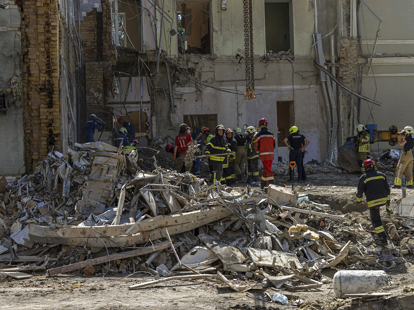 Am Montag war eine Rakete in ein zweistöckiges Gebäude auf dem Gelände des Kinderkrankenhauses «Ochmatdyt» in Kiew eingeschlagen. Zwei Erwachsene, darunter eine Ärztin, wurden getötet. Über 30 Menschen, darunter mindestens 8 Kinder, wurden verletzt. Bei dem heftigsten Raketenangriff auf Ziele in der Hauptstadt seit Jahresbeginn waren in der Dreimillionenstadt über 30 Zivilisten getötet worden.
