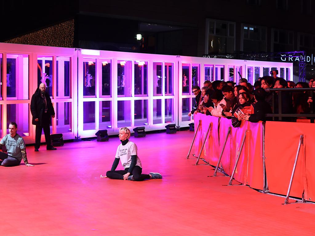 Die Gruppe Letzte Generation fordert eine radikale Klimawende und klebt sich immer wieder auch auf Strassen fest, um den Verkehr zu stören. Bei Beginn der Protestaktion waren die Gäste bereits im Saal, der rote Teppich war weitgehend leer.