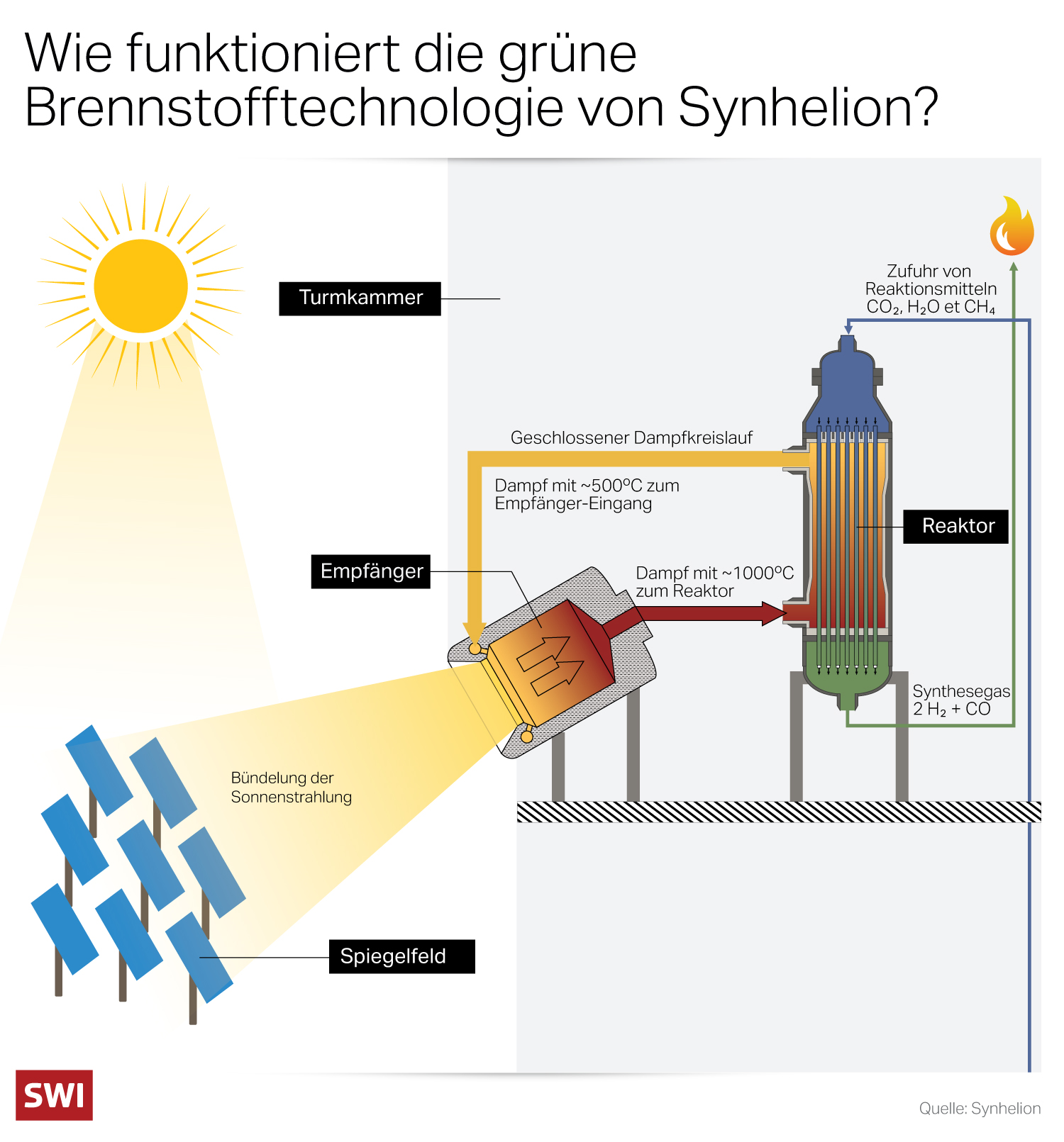 Nein, wir haben keine EU-Fördermittel erhalten. Wir haben Deutschland für unsere Pilotanlage gewählt, weil wir die Infrastruktur des Deutschen Zentrums für Luft- und RaumfahrtExterner Link mit starker lokaler Unterstützung nutzen konnten. Für unsere erste kommerzielle Anlage haben wir wegen der «Grenzertragsflächen» und der Sonnenbedingungen Spanien gewählt.