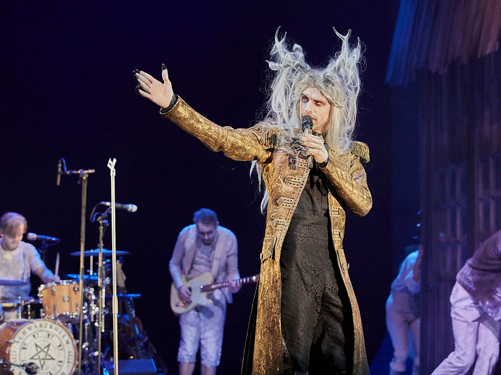 Die Berner Formation zeigt sich für einmal nicht als Kummerbuben, sondern als Müllersburschen, die sich zwischenzeitlich in Raben verwandeln. Jäggi spielt sogar Gevatter Tod, wofür er mit seinen Kollegen eine «Schauspiel-Schnellbleiche» absolvieren musste, wie er im Gespräch mit der sda erzählt. Mitten im Geschehen und Teil des Märchens zu sein, sei zwar nicht einfach, aber insgesamt ein «superaufregender Trip».