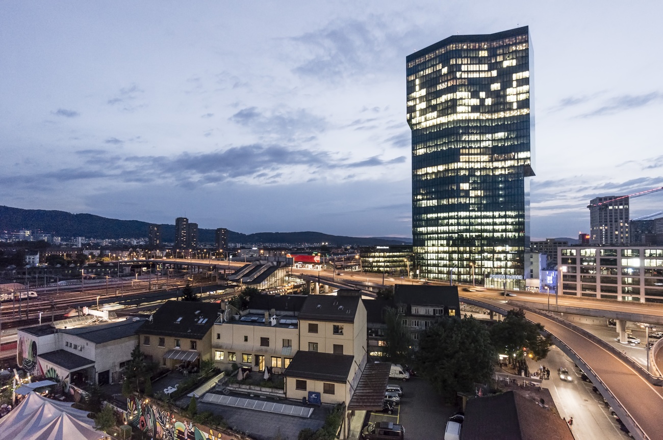 Ja, Verglasungen schneiden in der Regel schlechter ab als geschlossene Wände mit Wärmedämmung, auch wenn der Prime Tower sehr gute dreifache Sonnenschutz-Isoliergläser als Fassade hat. Dass er trotzdem gute Energiewerte erzielt, liegt an seiner Kompaktheit, das heisst am günstigen Verhältnis von Fassadenflächen zu Geschossflächen von eins zu drei, aber auch an öffenbaren Fenstern, am integrierten Sonnenschutz und an der Wärmepumpenheizung.