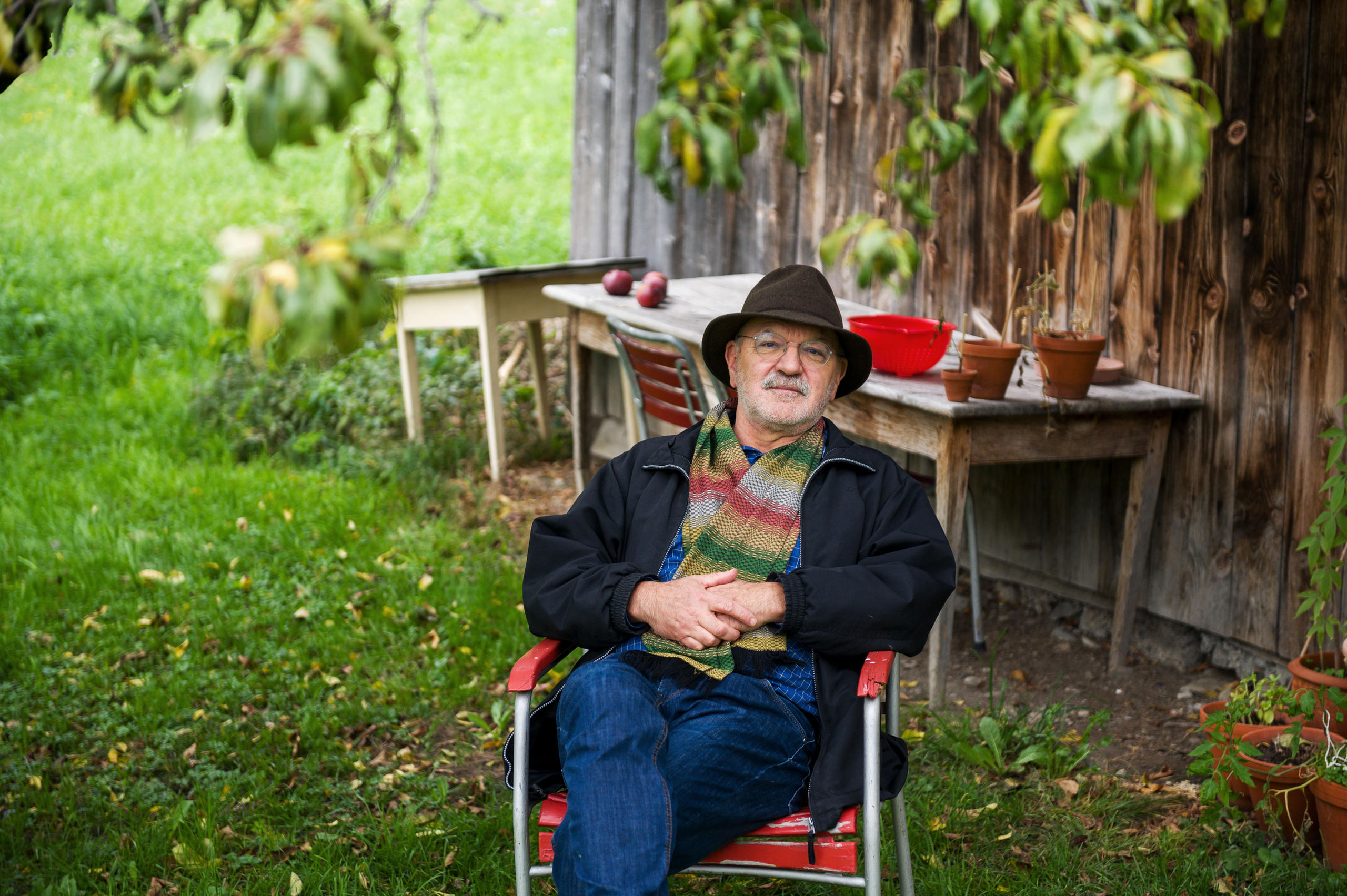 Köbi Gantenbein, Architekturjournalist und scheidender Juryvorsitzender des Architekturpreises «Constructive Alps», zu Hause im Garten in Fläsch, Kanton Graubünden. Florian Bachmann