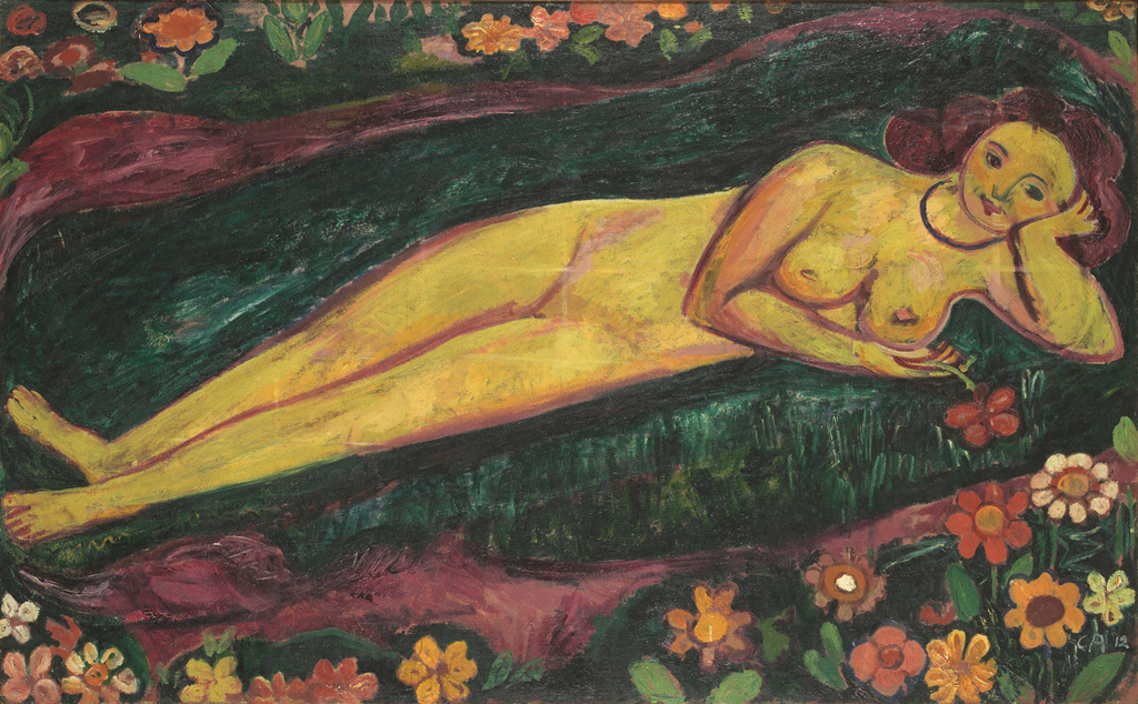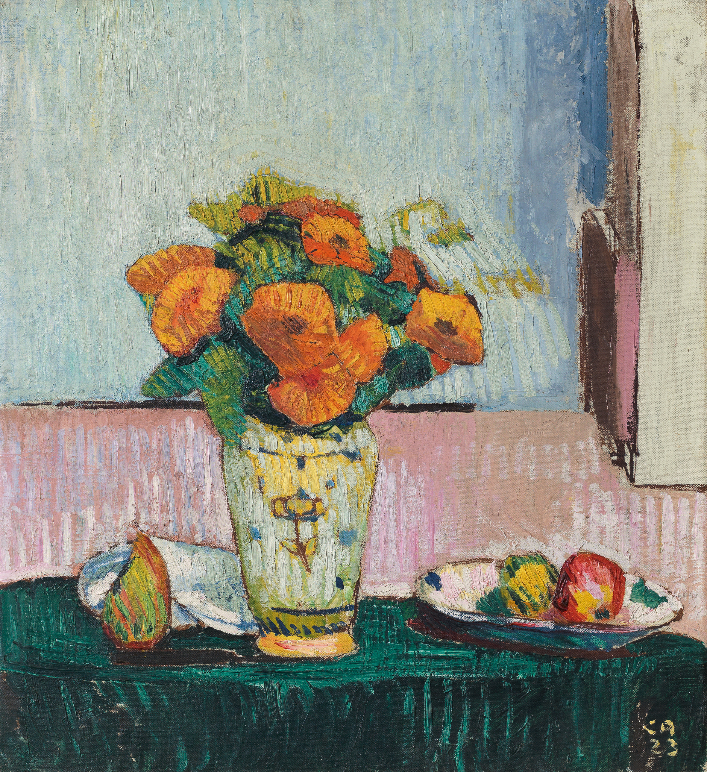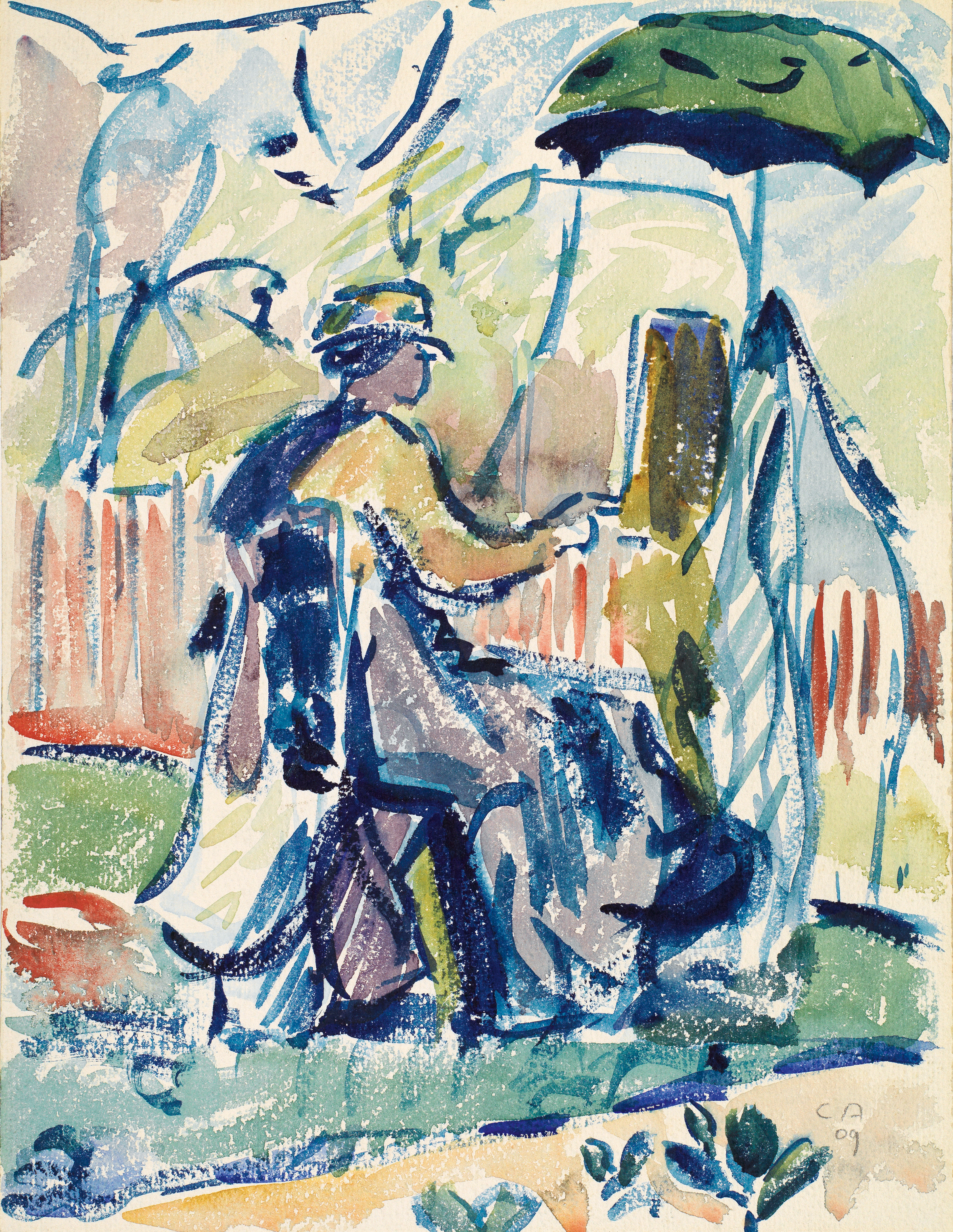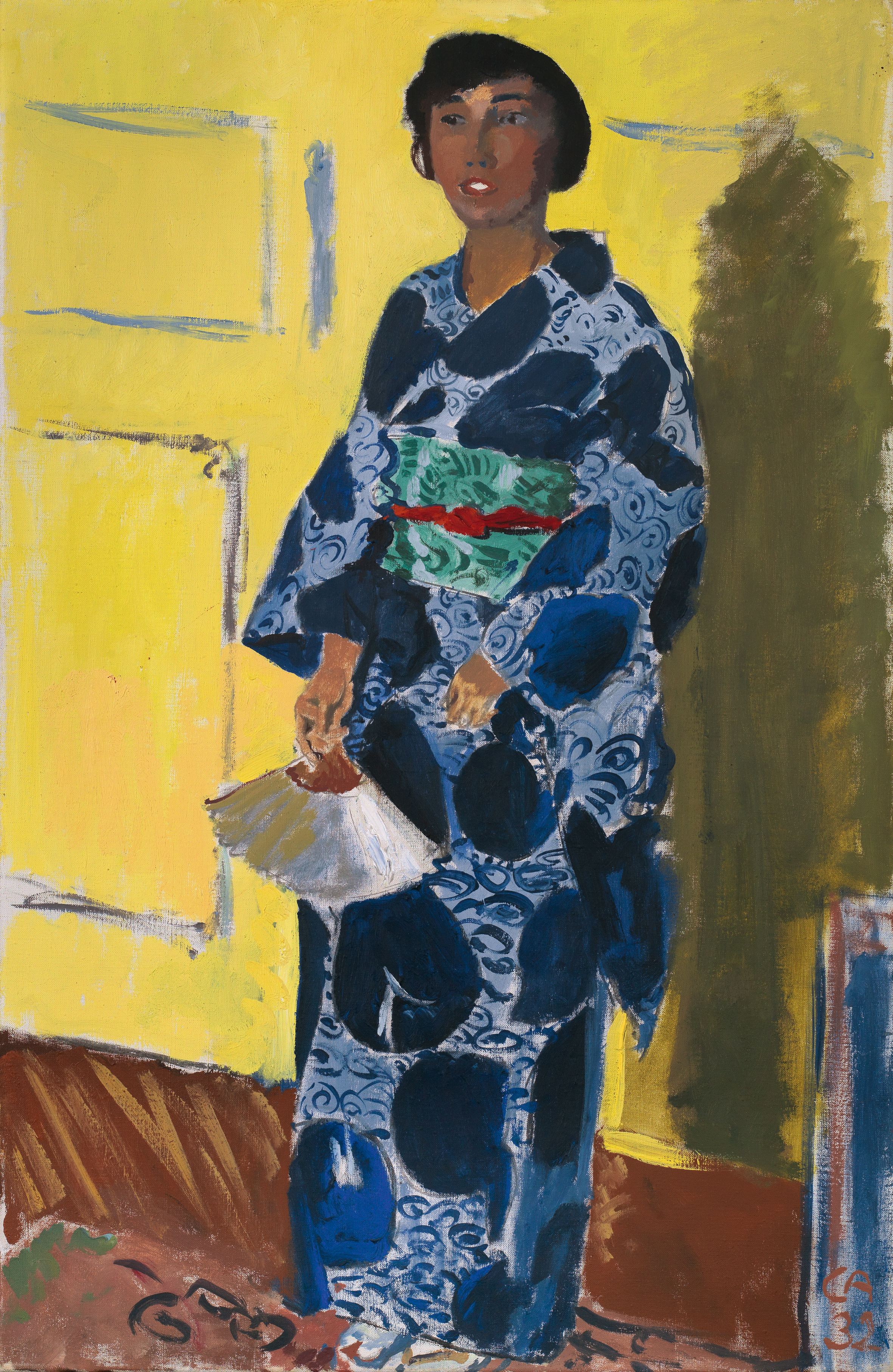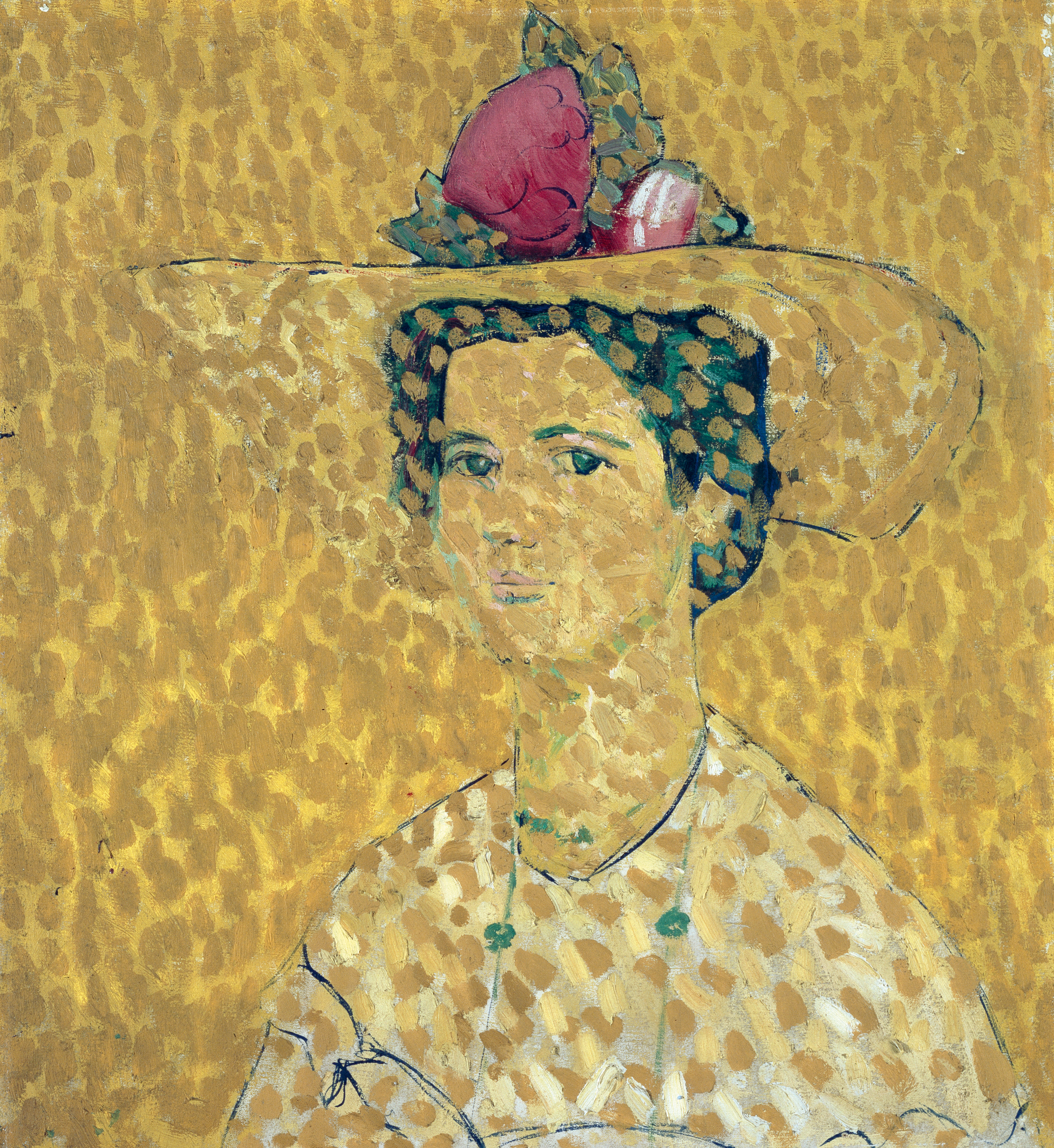 Bildnis Anna Amiet in Gelb mit blumengeschmücktem Hut, 1906
