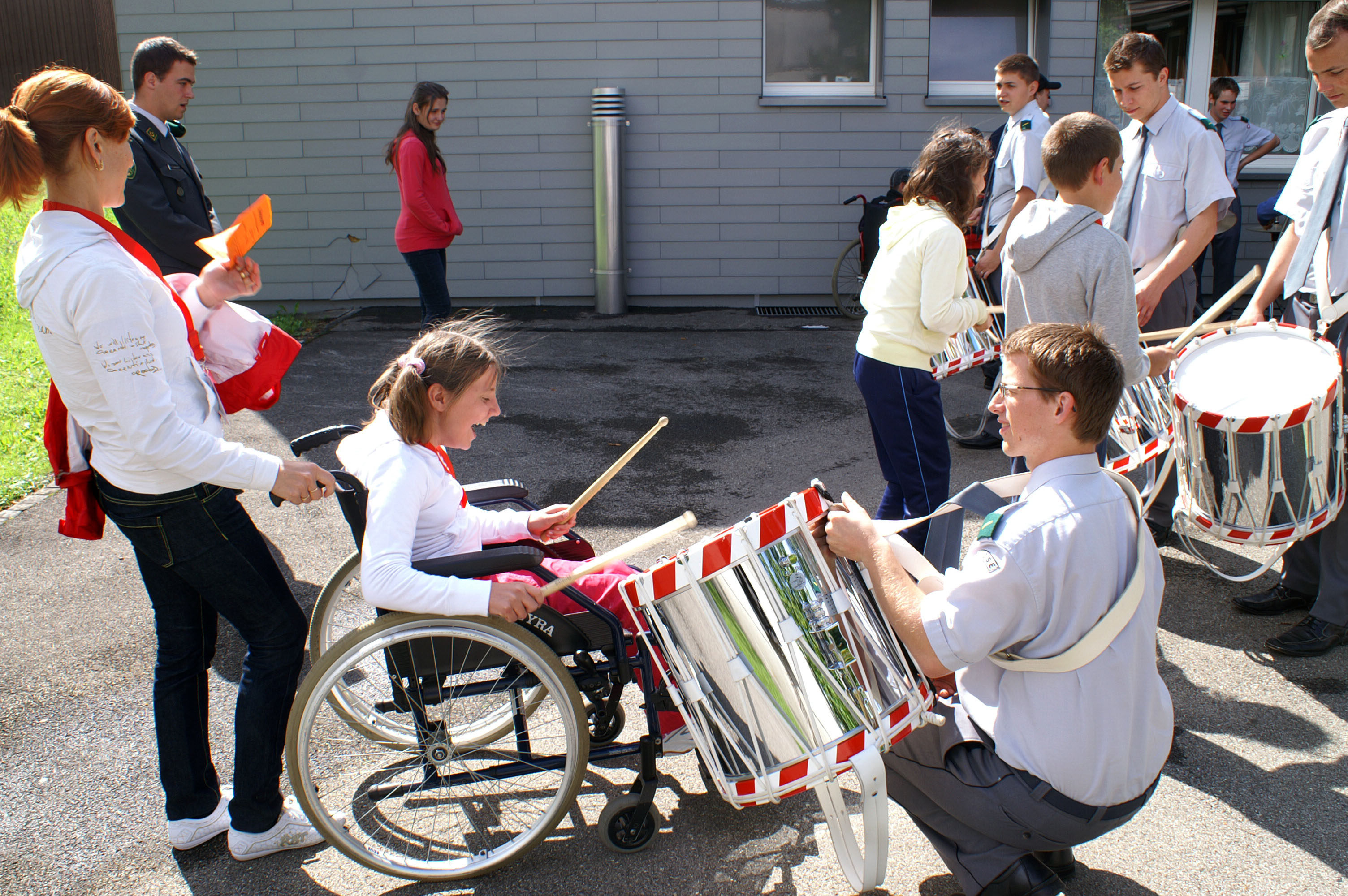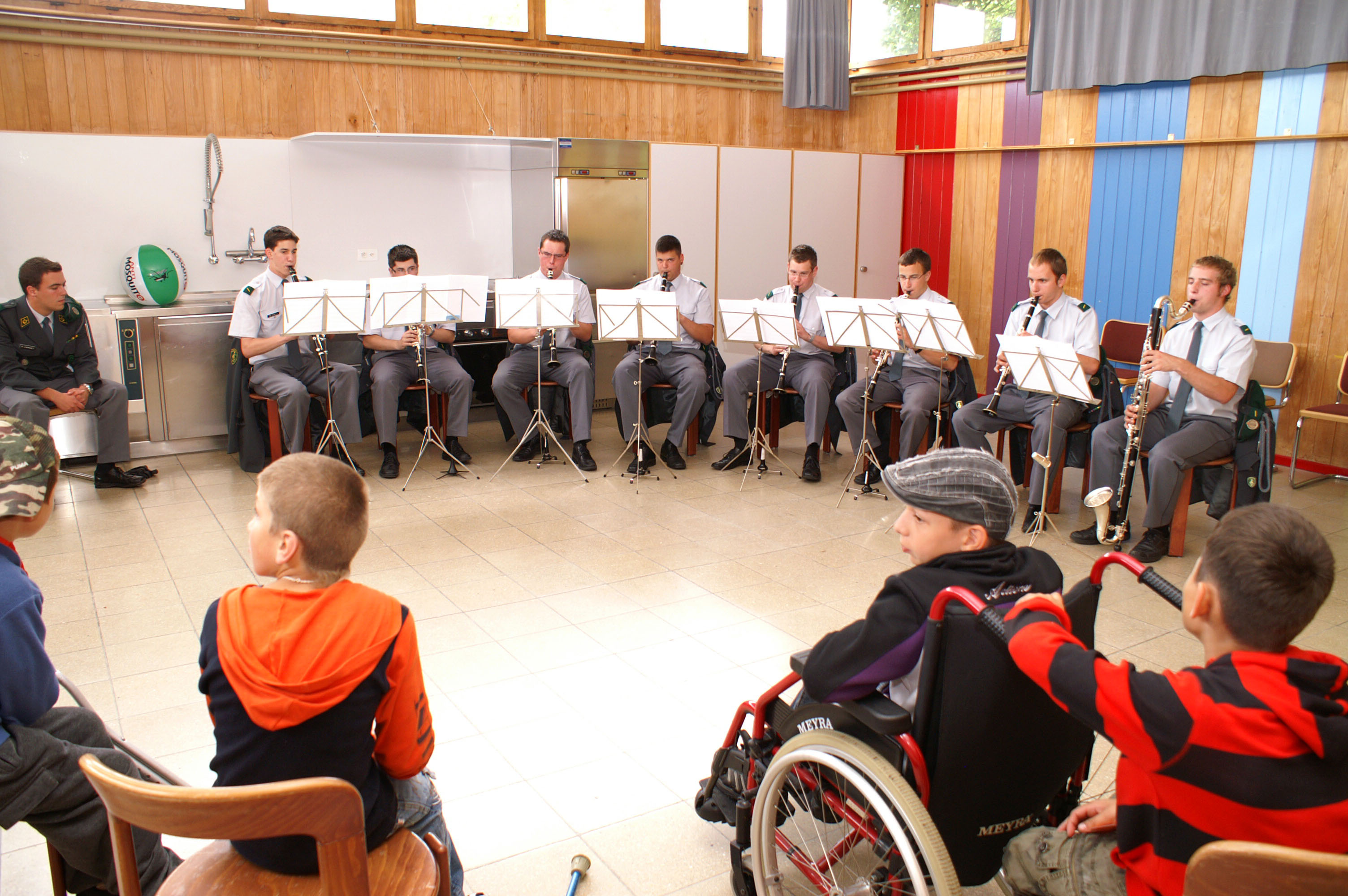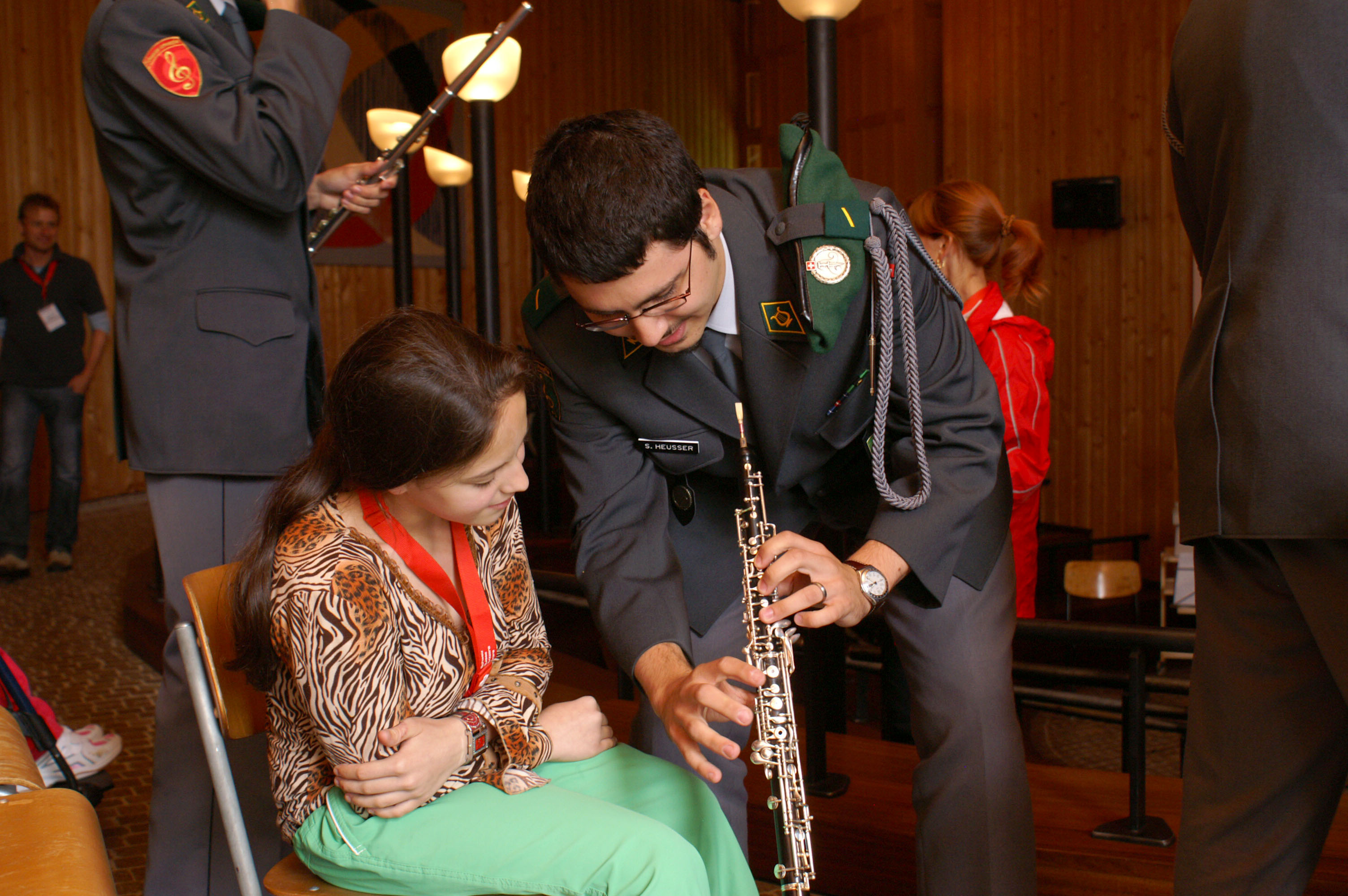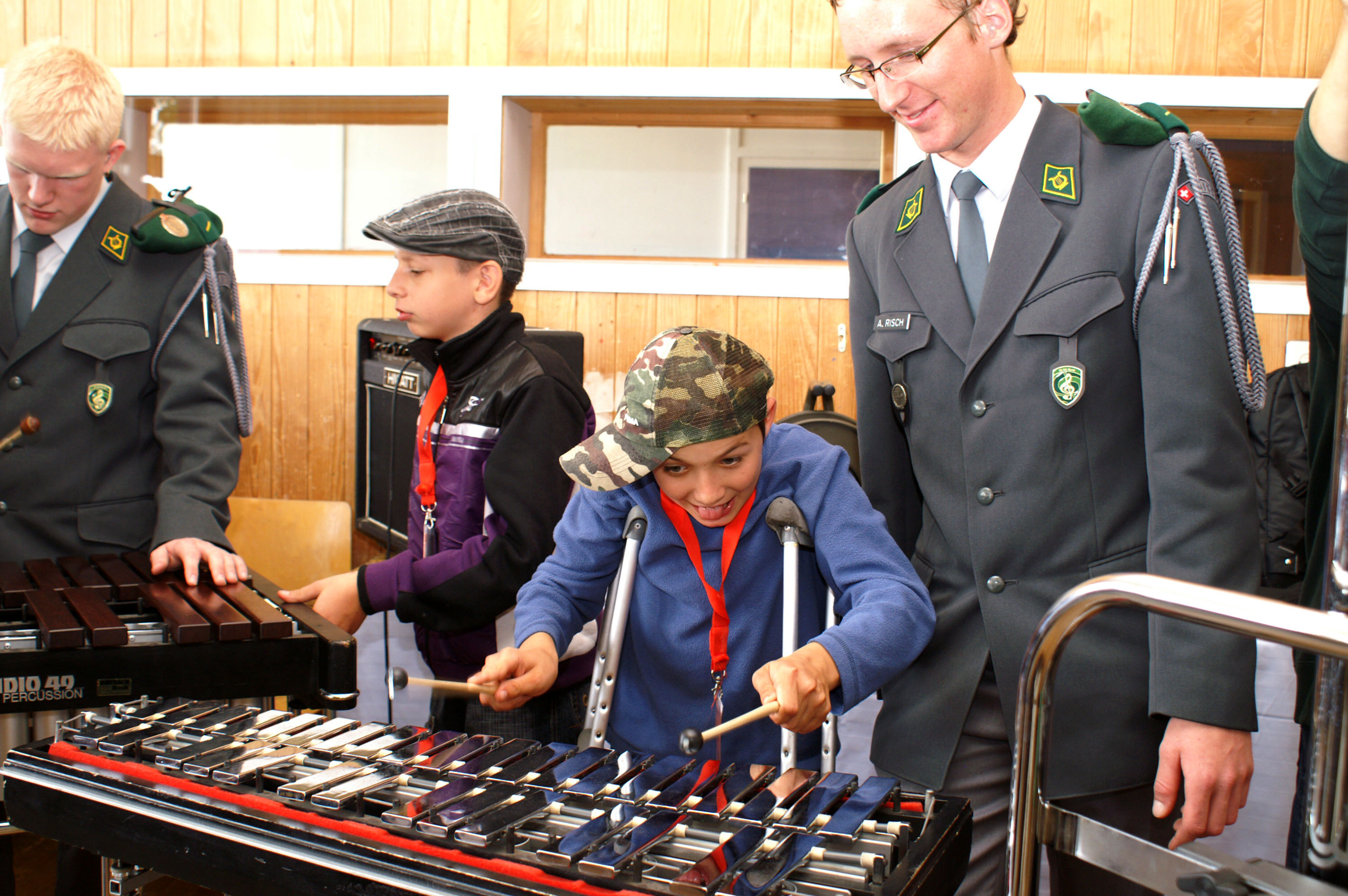 Die Stiftung swisscor hat 80 moldawischen Heimkindern ein Feriencamp im Kinderdorf Pestalozzi in Trogen ermöglicht. Als Abwechslung wurde die Musik-RS 16/1 aufgeboten: Mit Trompeten, Trommeln und Tuba sind die Kids in die Militärmusik eingeweiht worden – wobei das Selbstausprobieren natürlich den Höhepunkt des Programms ausmachte. (Bilder und Text: Alexander Künzle, swissinfo.ch)