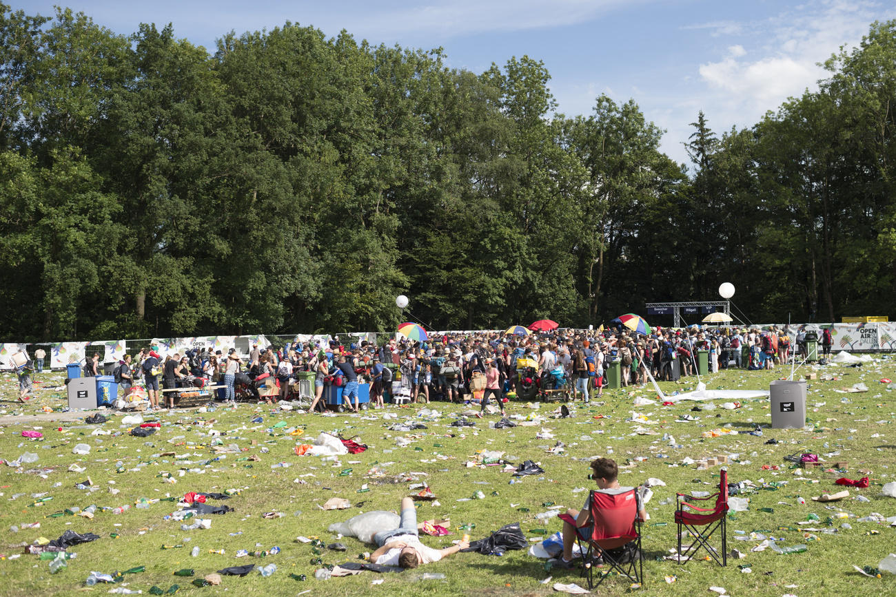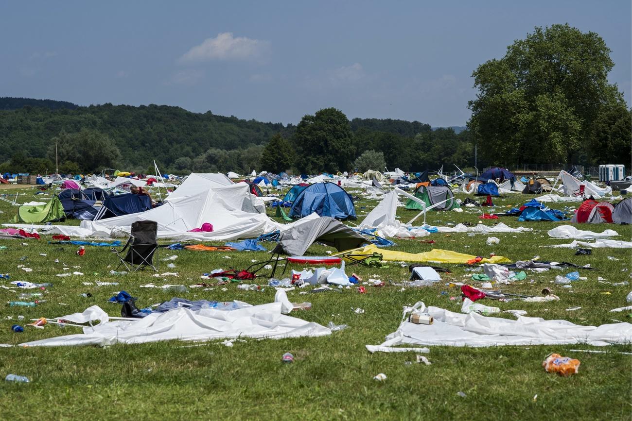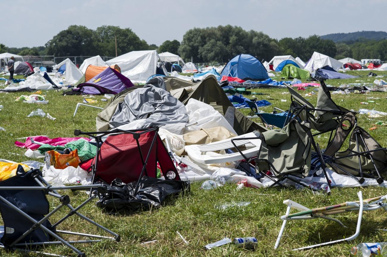 Schirme, Zelte, Kunstplanen, Pappteller, Gläser und Plastikflaschen: Das ist es, was nach den grossen Open-Air-Konzerten bleibt.