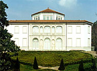 In einem 10’000 Quadratmeter grossen Park steht die pompöse, 1862 im Auftrag des liberalen Tessiner Bildhauers Vincenzo Vela (1820-1891) erbaute Villa blendend weiss auf einer Anhöhe über dem Dorf Ligornetto. In der Mitte des quadratischen Baus erhebt sich über zwei Stockwerke der achteckige Zentralraum, dessen aufragender, mit Fenstern durchsetzter Tambour von Weitem sichtbar ist.