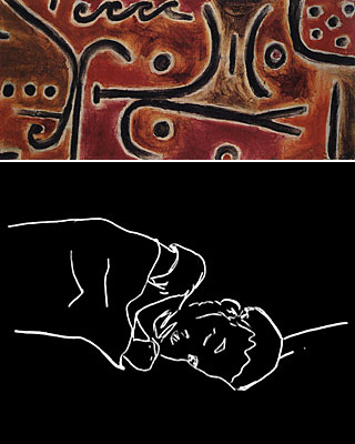 Paul Klee: "Gefährliches 124 (J4)", 1938; Zilla Leutenegger: "odds for tonight ll", 2002.