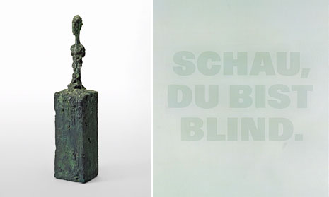 Alberto Giacometti: "Buste d'homme sur socle", 1949/50; Rémy Zaugg: "Schau, du bist blind.", 1988/1991.