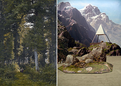Robert Zünd: "Zwei Kinder im Eichwald", undatiert; Monica Studer/Christoph van den Berg: "Vermessung", 2006.