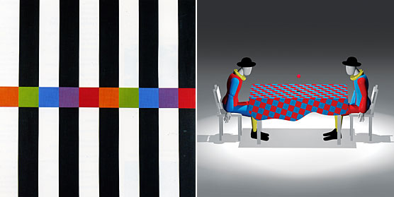 Max Bill: "fünf farben zu schwarz und zu weiss", 1987 (links); Yves Netzhammer: "Die ungenauen Körper", Filmstill 2006.