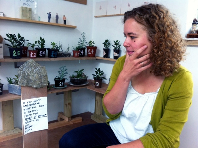 Der Stein der Weisheit nimmt in ihrem Studio einen Ehrenplatz ein. Es ist ein mit Glitzer überzogener Stein, mit der Botschaft: «Wenn Sie nicht verstehen, worum dies alles geht, berühren Sie den Stein der Weisheit. Alles wird klar werden.»
