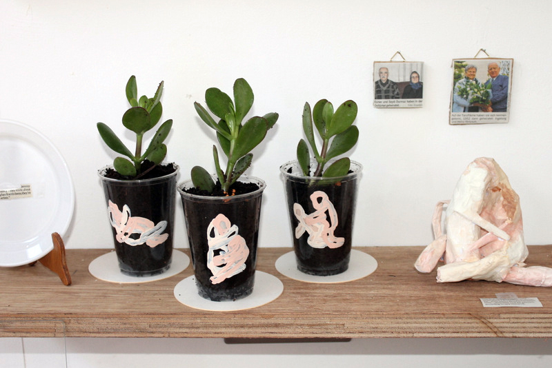 Das Studio von Rosalie Schweiker befindet sich im Süden Londons in einer umgebauten Garage am Ende einer Strasse, wo sich früher Stallungen befanden. Simple Möbel teilen sich den Platz mit Figuren, Batiksocken und Töpfen mit Avocado-Pflanzen, welche die Schweizer Kunstschaffende selber gezogen hat.