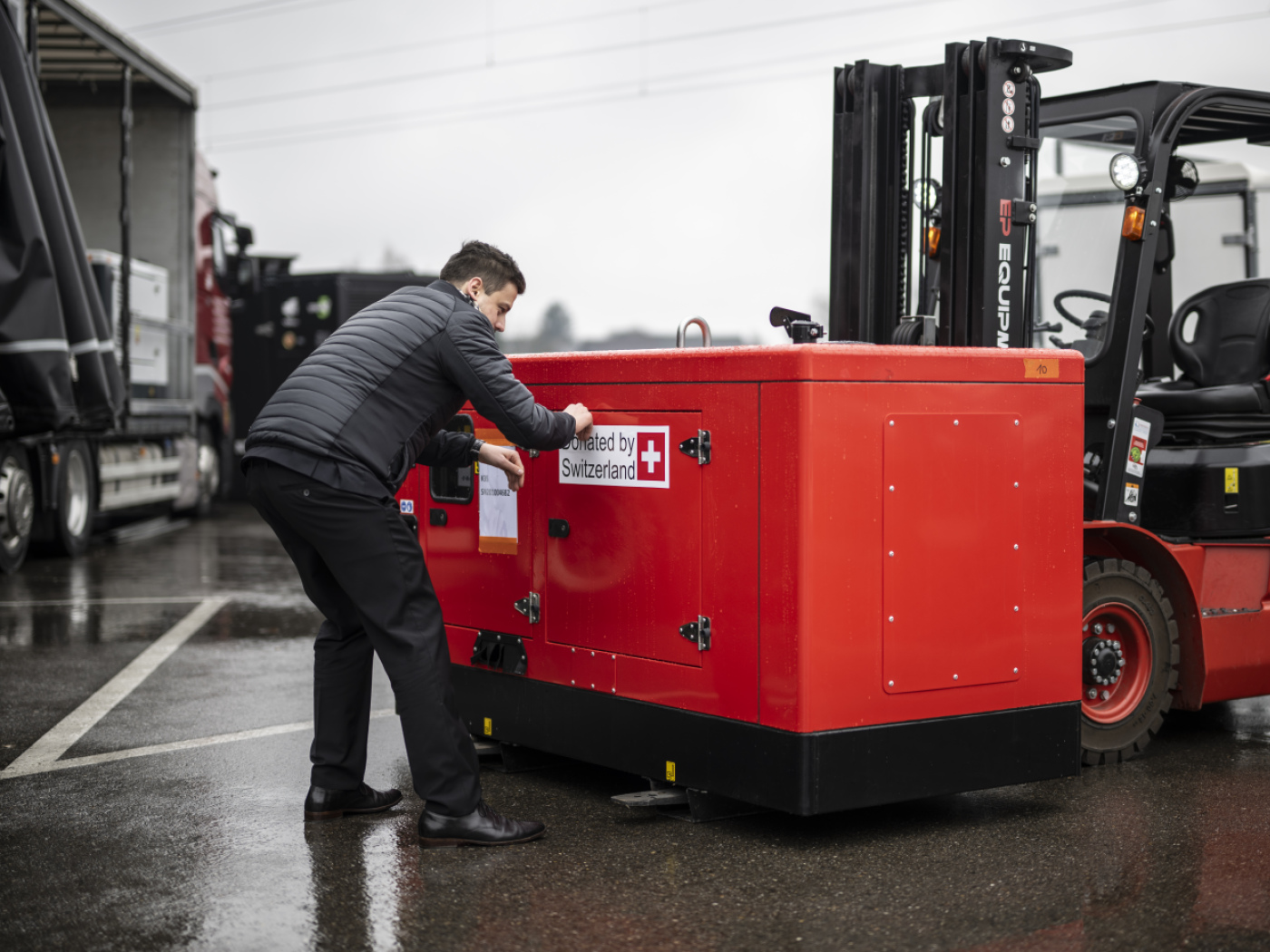 Nach Angaben des Schweizer Wirtschaftsdepartements werden voraussichtlich vier Schweizer Unternehmen Material im Energiesektor in die Ukraine schicken. Ein Teil dieser Generatoren wird an das ukrainische Entwicklungsministerium geliefert – dieses wird sie nach Dringlichkeit einsetzen.