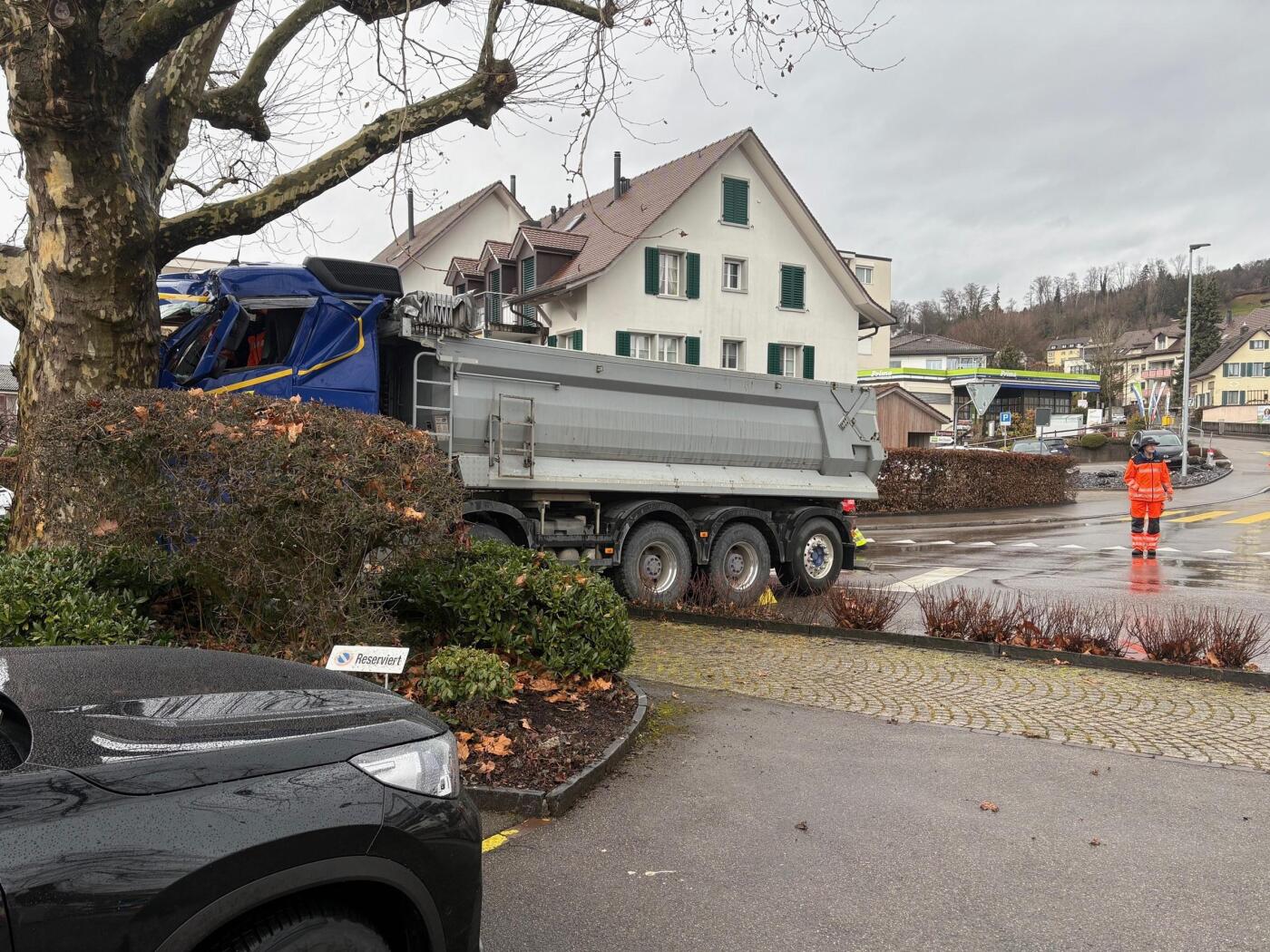 Lastwagenchauffeur fährt in Uetikon am See in einen Baum
