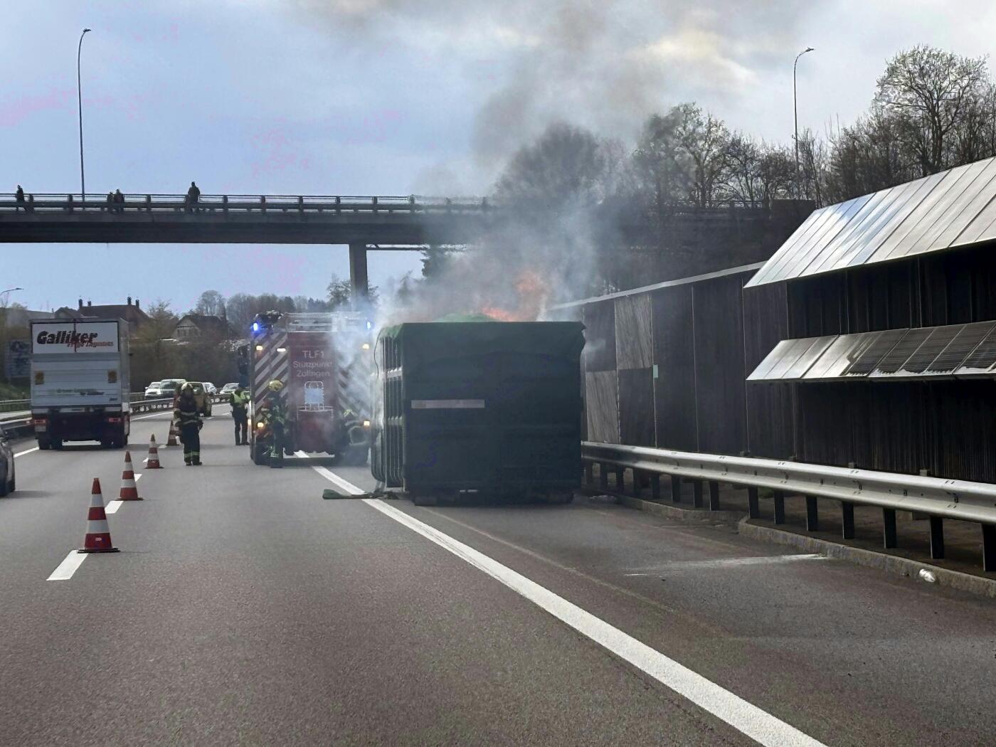 Lastwagenmulde auf A1 bei Oftringen AG gerät in Brand