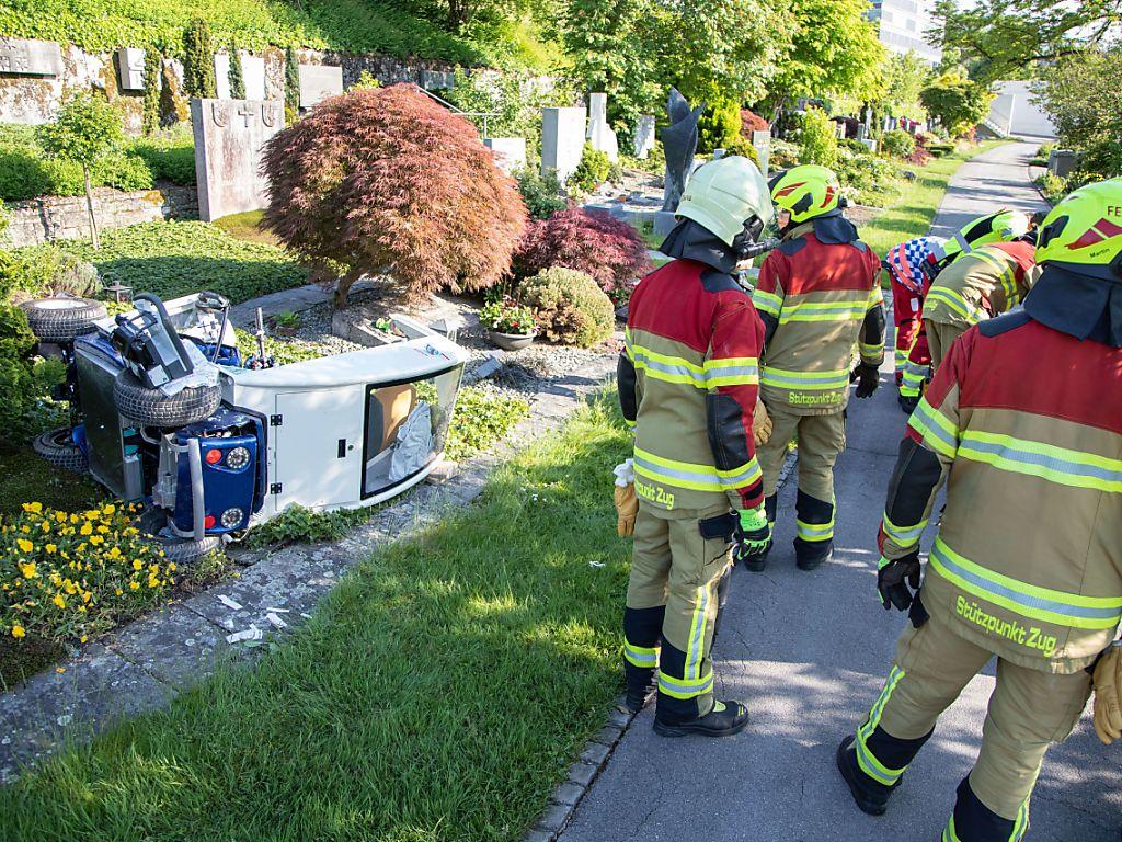 Der Senior fuhr mit seinem Senioren-Elektrofahrzeug auf dem Rägetenweg talwärts in Richtung Waldheimstrasse. Dabei verlor er aus noch unbekannten Gründen die Kontrolle über sein Fahrzeug, überquerte die Waldheimstrasse und stürzte rund drei Meter die Böschung hinunter auf das Friedhofsgelände. Dort wurde er unter seinem Elektromobil eingeklemmt. Dies teilte die Zuger Polizei am Montag mit.