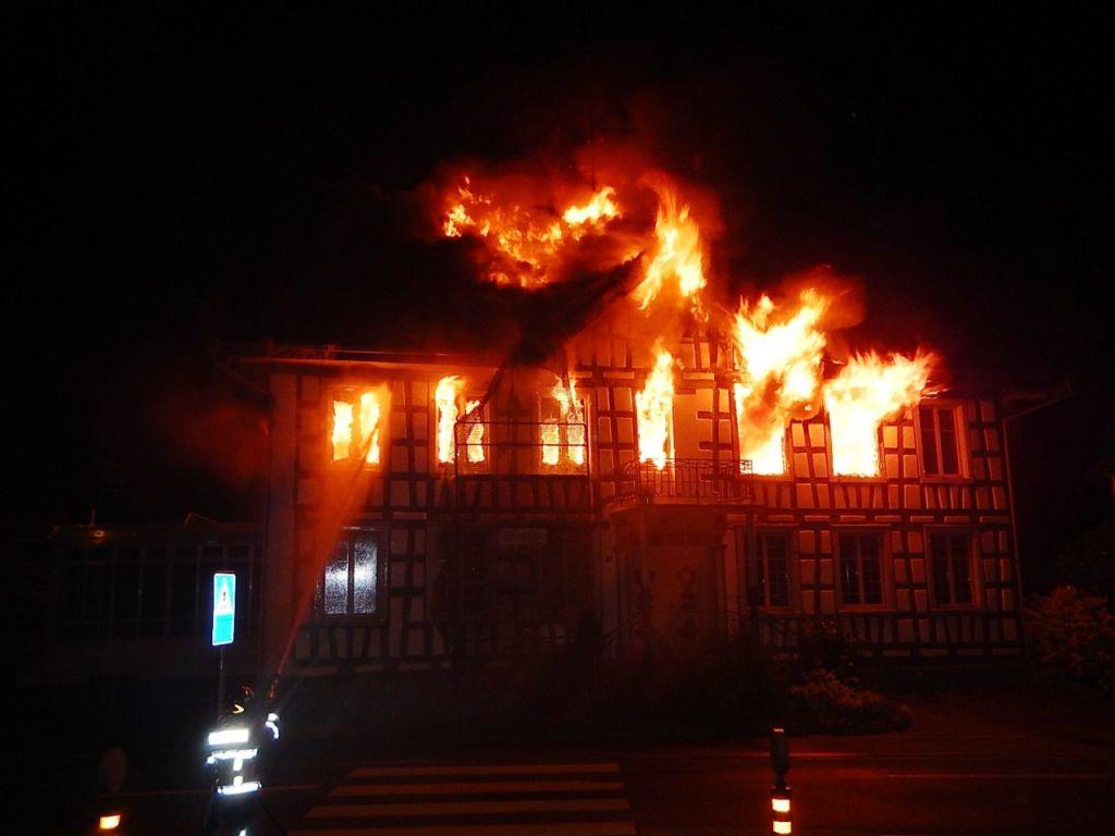 Als am Dienstagmorgen um 3.20 Uhr die Notrufzentrale alarmiert wurde, stand das Gebäude im Zentrum des Dorfes bereits in Flammen. Die Feuerwehr war mit rund 60 Personen rasch vor Ort, konnte aber nicht mehr verhindern, dass das ehemalige Restaurant vollständig ausbrannte.