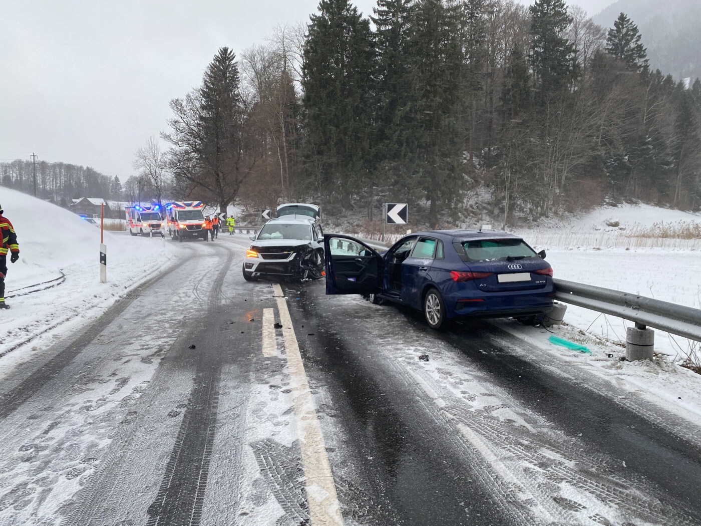 Bei einer Frontalkollision zweier Autos in Morgarten sind am Samstagnachmittag eine 30-jährige Lenkerin leicht verletzt und eine 67-jährige Lenkerin erheblich verletzt worden. Der Unfall ereignete sich auf schneebedeckter Strasse.