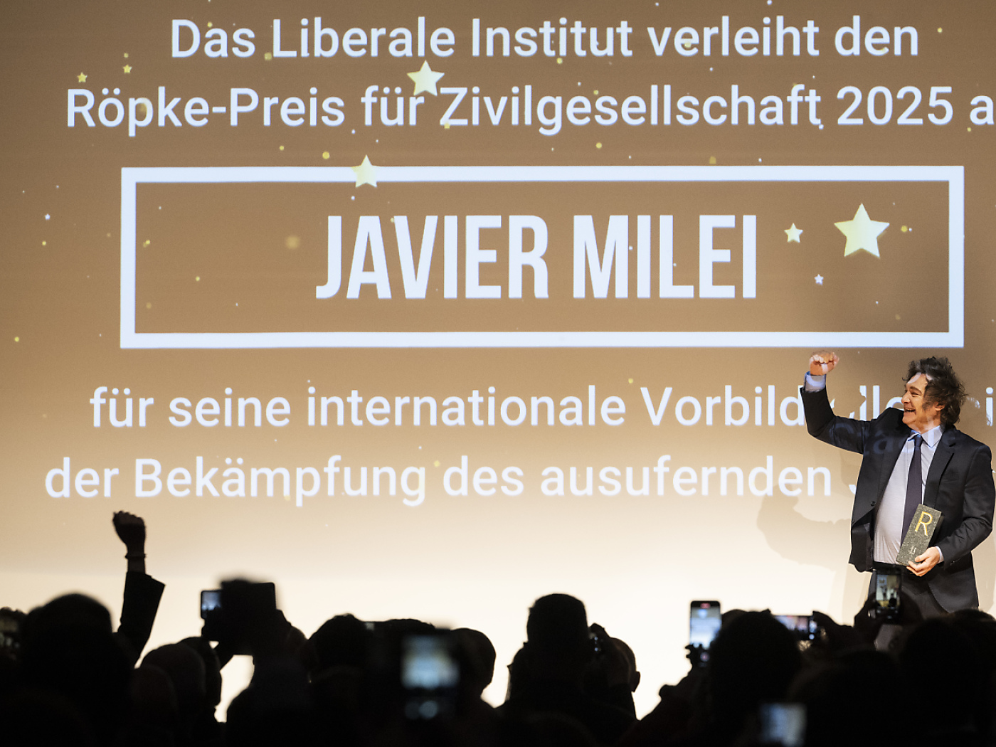 Milei erhielt den Röpke-Preis für Zivilgesellschaft 2025 für seine «internationale Vorreiterrolle bei der Bekämpfung des ausufernden Staats» anlässlich der traditionellen Freiheitsfeier des Instituts, wie dieses in einer Medienmitteilung schreib.