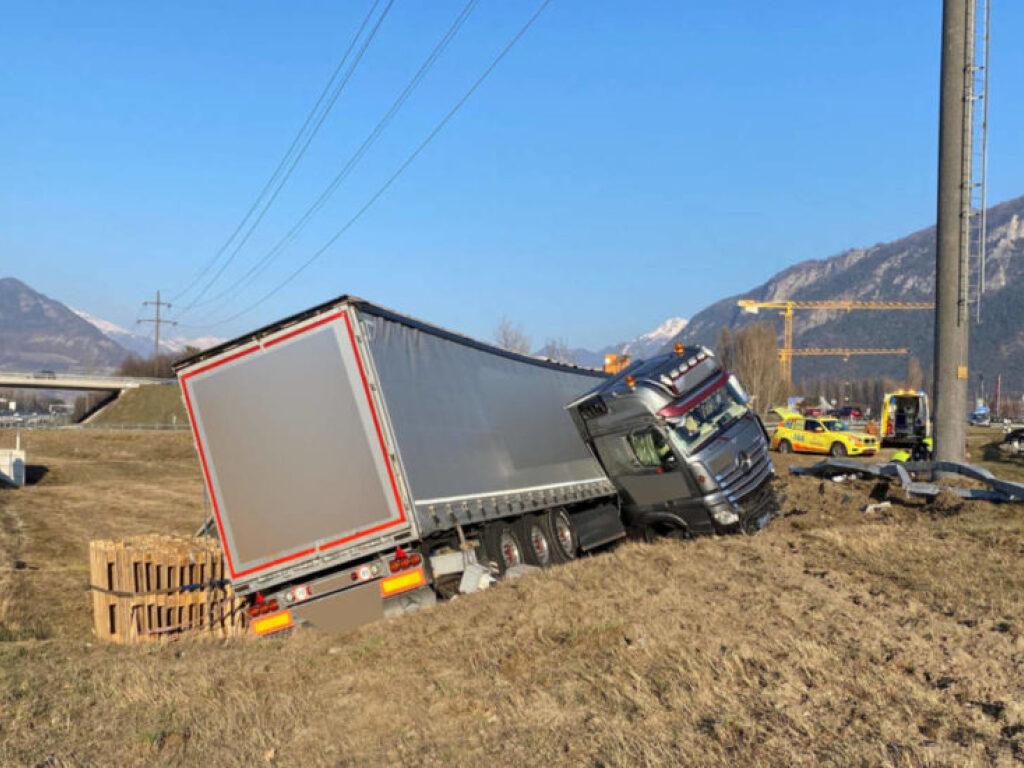 Der LKW-Lenker war am Montag gegen 16.25 Uhr auf der A9 von Sitten in Richtung Siders unterwegs, wie die Kantonspolizei Wallis am Dienstag mitteilte. Ausgangs der Galerie von Champsec, kurz vor der Autobahnausfahrt Sitten Ost, geriet er aus noch nicht geklärten Gründen an den rechten Strassenrand, prallte anschliessend gegen die Leitplanken und kam auf dem angrenzenden Grünstreifen zum Stillstand.