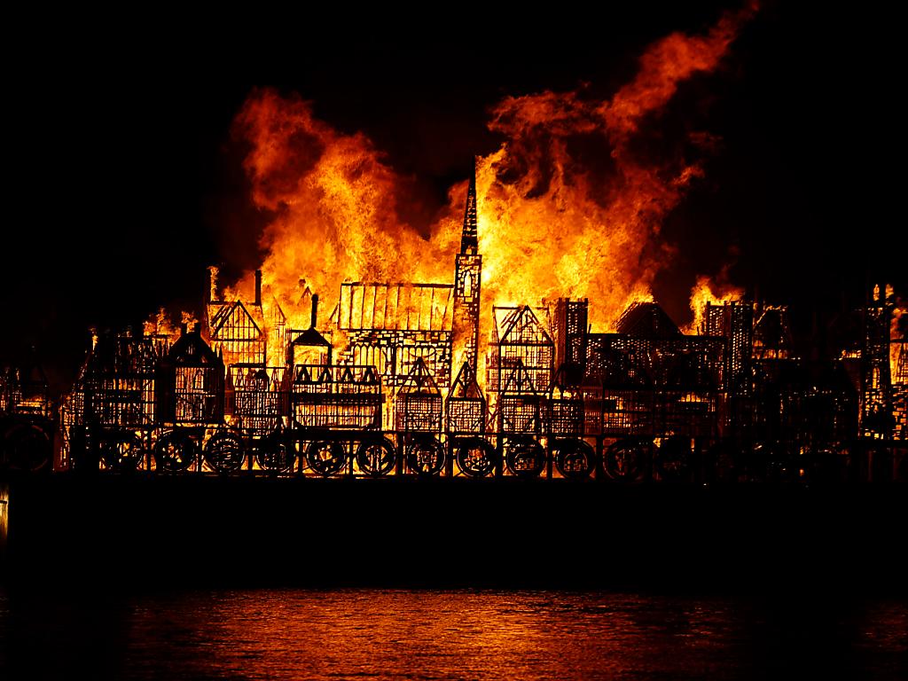 Die auf einem Floss schwimmende Installation des US-Künstlers David Best brannte vollständig ab. Sie war zuvor in wochenlanger Projektarbeit unter anderem von benachteiligten Jugendlichen gebaut worden. Der Event war Abschluss einer Reihe von Veranstaltungen, die an den grossen Brand von London erinnerten.