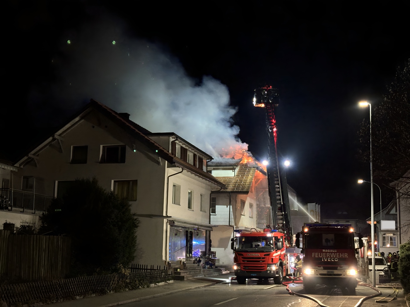 Ein Mann hat sich am späten Freitagabend bei einem Brand in Madiswil leicht verletzt. Das Feuer brach im Dachstock eines Mehrfamilienhauses aus.