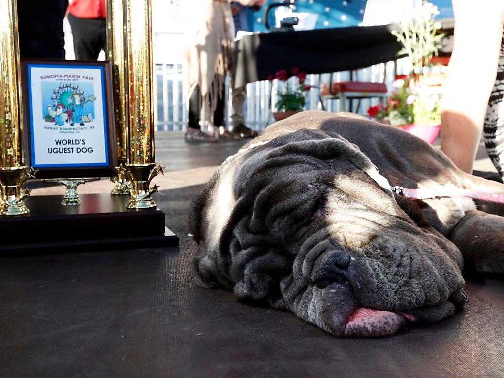 (Keystone-SDA) Lange Hautlappen hängen von «Marthas» Kopf, ihre Augen sind blutunterlaufen, ihr Fell grau – dafür ist die Hündin nun zum «Hässlichster Hund der Welt» gewählt worden. Das drei Jahre alte Tier gewann den Wettbewerb «World’s Ugliest Dog» im kalifornischen Petaluma.
