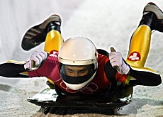 Im Skeleton sausen die Athletinnen und Athleten kopfvoran den Eiskanal hinunter, das Kinn nur Millimeter über dem Eis.