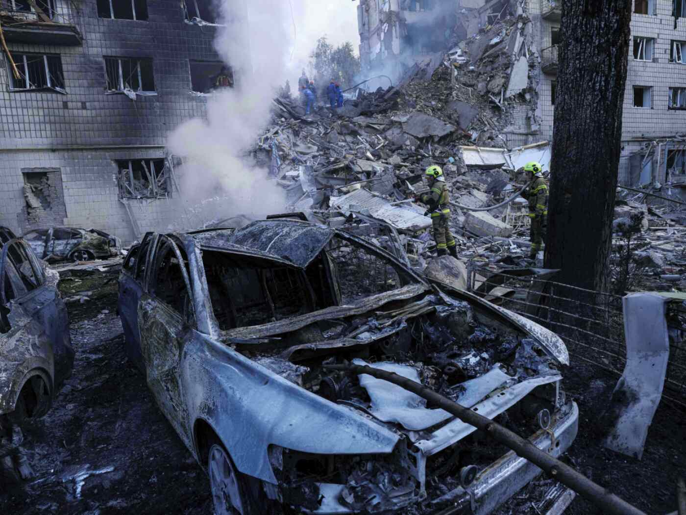 (Keystone-SDA) Innenminister Ihor Klymenko hatte erklärt, dass ein Marschflugkörper vom Typ Ch-101 direkt in das neungeschossige Hochhaus eingeschlagen sei. Der ukrainische Präsident Wolodymyr Selenskyj verurteilte die Angriffe auf die Hauptstadt als russischen Terror.