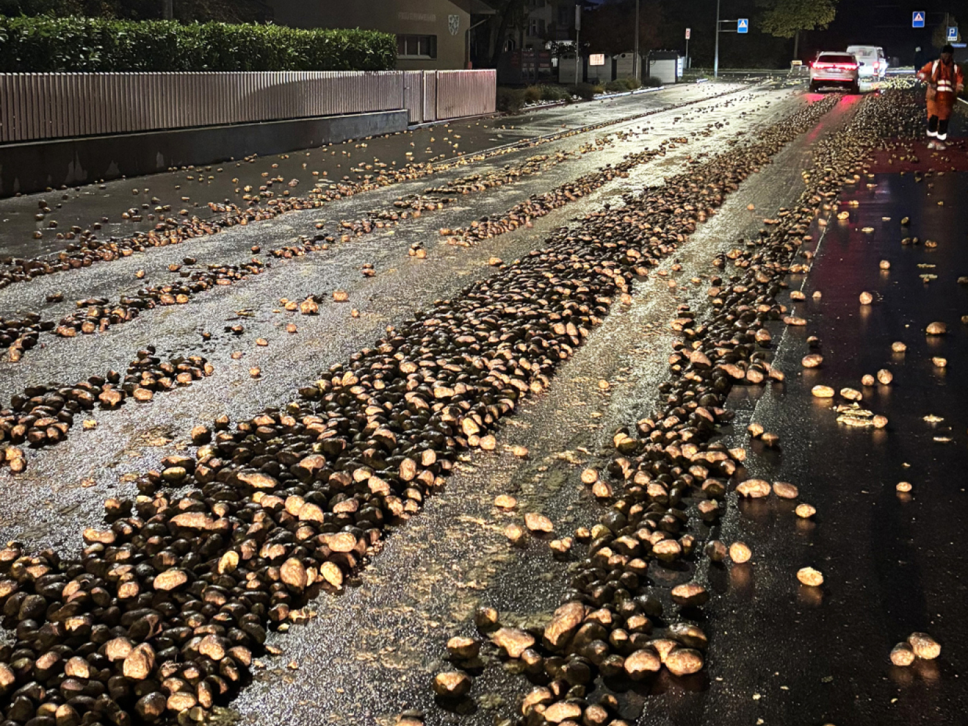 In Weinfelden sind am Mittwochmorgen mehrere Tonnen Kartoffeln auf der Strasse gelandet. Sie fielen aus dem Anhänger eines Traktors, dessen Heckklappe sich während der Fahrt öffnete. Wegen der Räumungsarbeiten musste der Verkehr umgeleitet werden.