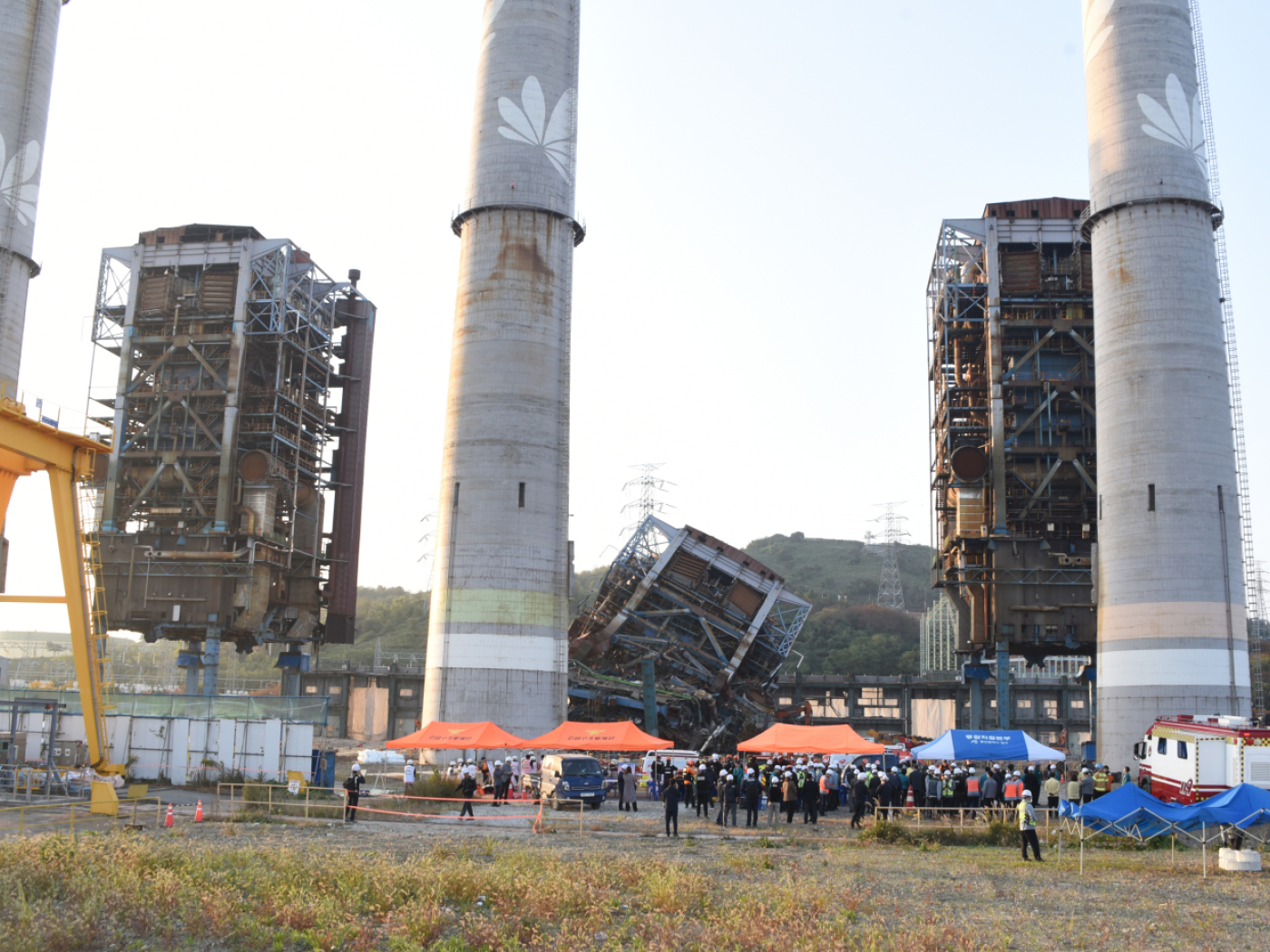 Der etwa 60 Meter hohe Kesselturm kollabierte am Donnerstag im Zuge von Abrissarbeiten. Zuvor hatten laut Yonhap Bauarbeiter mehrere Stahlstützen des Gebäudes durchgetrennt, um die geplante Sprengung zu erleichtern. Der Turm wurde bereits 2021 nach vier Jahrzehnten Betrieb stillgelegt.