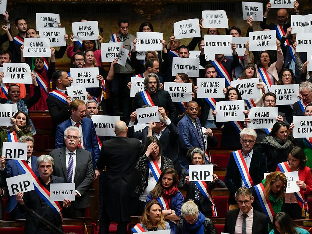 Damit ist die Reform in Frankreich nach monatelangem Streit nun offiziell beschlossene Sache. Bei der ersten Abstimmung im Parlament am Montagabend entzogen 278 Abgeordnete der Mitte-Regierung das Vertrauen. Die absolute Mehrheit von 287 Stimmen wurde aber nicht erreicht. Für den zweiten Misstrauensantrag, eingereicht von den Rechtsnationalen, stimmten lediglich 94 Abgeordnete.