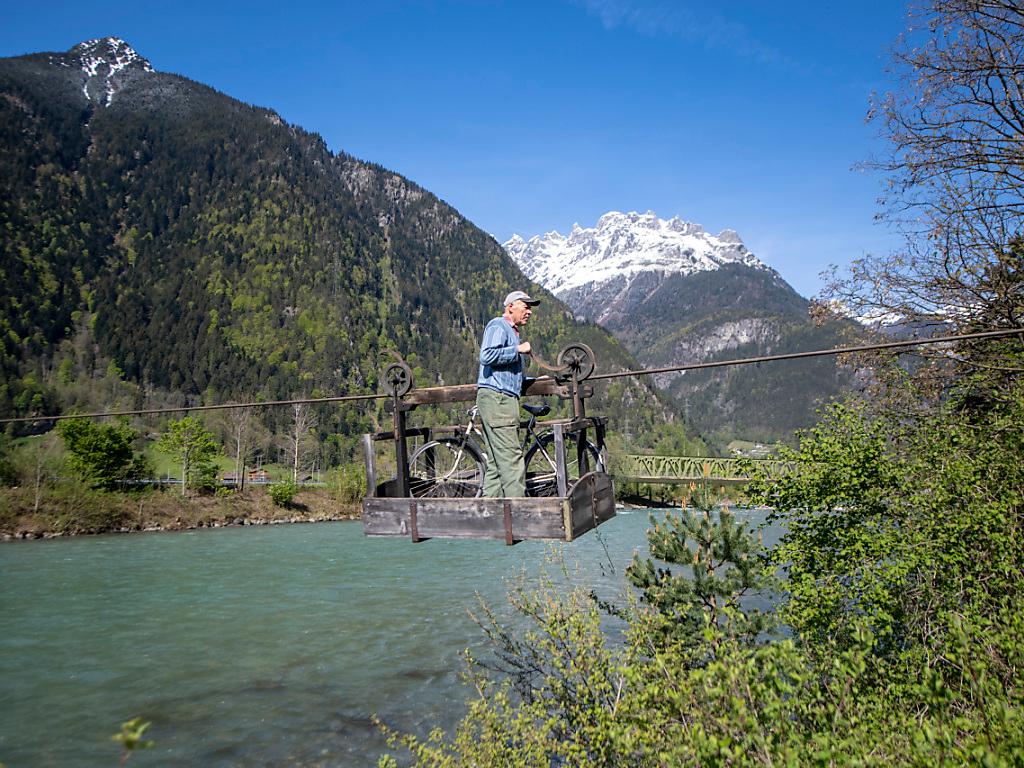 (Keystone-SDA) Die Reuss entzweit die enge Urner Talebene. Zwar gibt es Brücken, doch am Flussufer auf der Grenze zwischen Silenen und Erstfeld führt ein anderer Weg über das Wasser: Eine über hundertjährige Drahtseilbahn, angetrieben von Hand.
